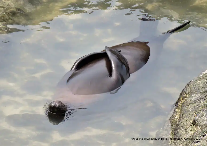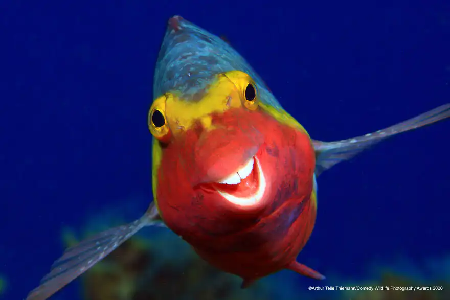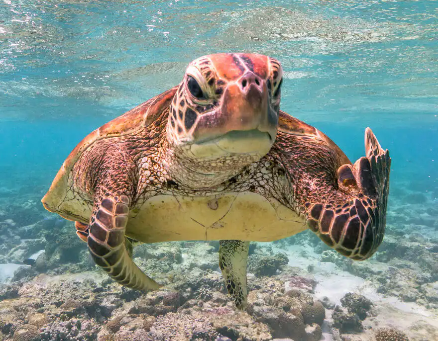 Celkovým tohtoročným víťazom je Mark Fitzpatrick za úžasnú fotografiu „Terry the Turtle flipping the bird“, ktorá porazila 7 000 ďalších účastníkov z celého sveta. Mark snímku zachytil, keď plával s korytnačkami pri ostrove Lady Elliot v austrálskom Queenslande. Podarilo sa mu zachytiť okamih, keď sa Terryho plutva sťahuje dozadu, keď pláva smerom k fotoaparátu, takže vyzeral, akoby korytnačka skutočne ukazovala “fuckera” 🙂