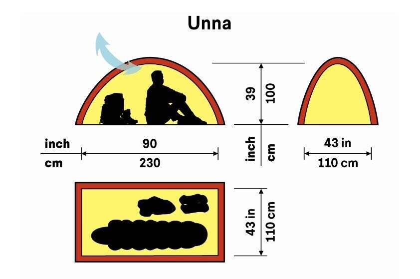 Konštrukcia: Plne samonosný (netreba kolíky na to, aby stál – ideálne na skaly alebo zamrznutú zem).