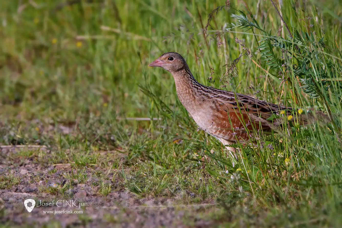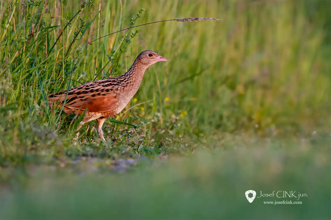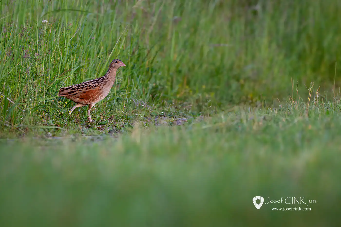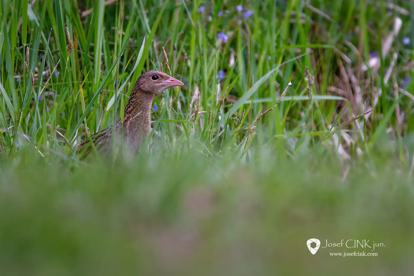 Na chřástala polního (Crex crex) jsem narazil čirou náhodou na jedné lokalitě v Chráněné krajinné oblasti Brdy, kde jsem původně čekal na naprosto odlišný druh. Prozradil se svým typicky skřehotavým hlasovým projevem „ krex-krex“, který sameček vydává při toku od soumraku do rána. Bohužel bylo to již v době, kdy jsem měl fototechniku sbalenou a světelné podmínky neslibovaly použitelný záběr. Nakonec jsem to přeci jen zkusil, fotoaparát namířil v předpokládaném směru a zalehl na zem. Po několika málo vteřinách na mě hned vykoukla zvědavá hlava z vysoké trávy 🙂 Sekvenční střelba stačila jeho krátké odhalení zaznamenat a alespoň jeden snímek se nakonec celkem i povedl 🙂