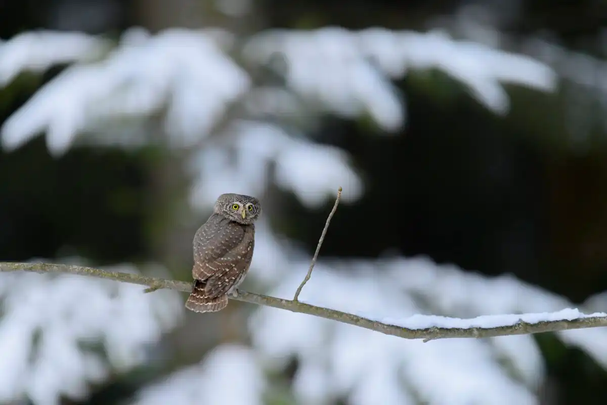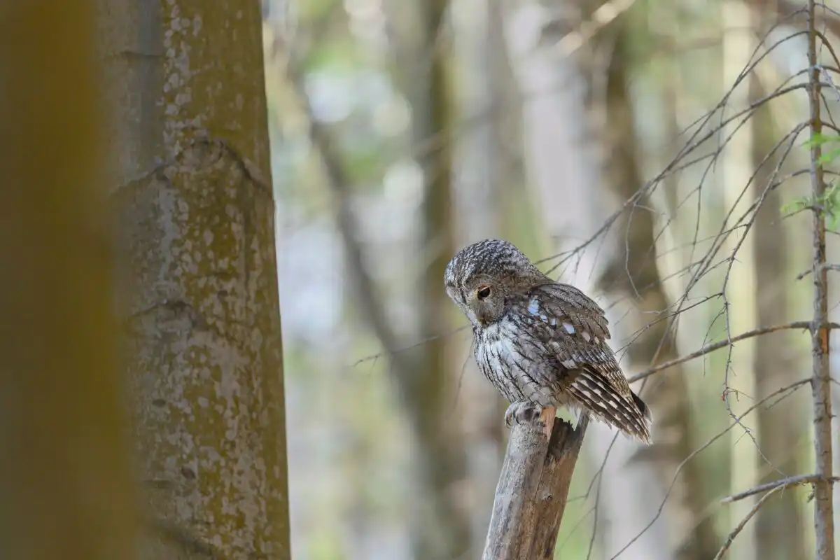 Ďalším a myslím si že ťažším orieškom, bola sova obyčajná. Tú som sa rozhodol skúsiť nafotiť, lebo v mojom portfóliu doteraz chýbala. Prvé vychádzky boli náročné – štyri večery ani ťuk. Až jedno doobedie, keď som sa bol prejsť za jariabkom hôrnym, či už piskajú, som začul Obyčku. Zahúkala z opačnej doliny, v ktorom som práve bol ja. Rýchlo som sa presunul. Strávili sme spolu obed – raz za pol hodinky sa ozvala. Potešený som šiel domov, aj keď sa naše pohľady nestretli.