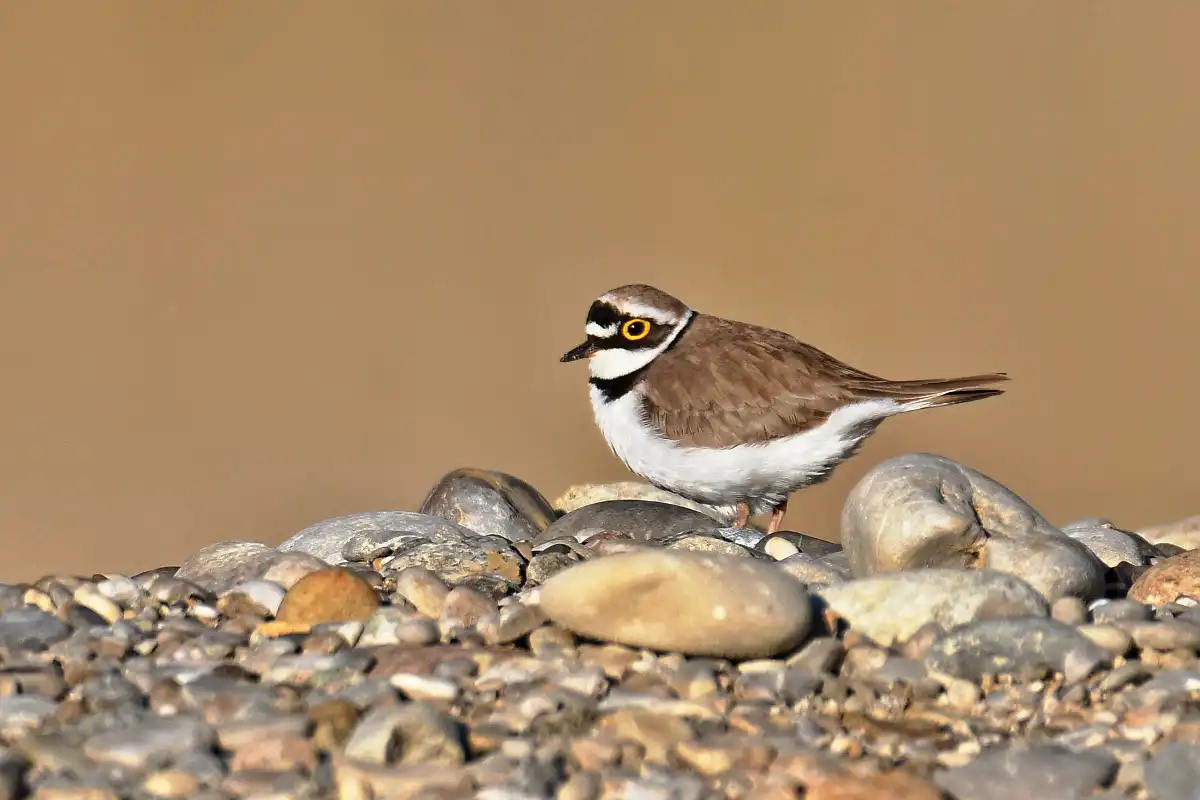 Kulík riečny ( charadrius dubius ) .Tohoto maličkého vtáčika, o niečo väčšieho ako vrabec som sa rozhodol ísť pozrieť na jednu lokalitu kde sa v apríli pravidelne vracia z Afriky.Na iných miestach som ho zatiaľ nezazrel, tak som veril, že tu sa ukáže ako prvý. A nemýlil som sa, čo ma potešilo. Pobehoval, cupital, preletoval si od mláčky k mláčke. Žije na štrkových a pieskových plochách kde nieje veľa vegetácie. Má krásnú výraznú čiernu kresbu a veľké oči so žltým viečkovým okrajom. Veľmi zaujímavá je jeho chôdza. Rýchlé behanie, zrazu zastavenie. Let je veľmi rýchlý. Živí sa červami, hmyzom, larvami, pavúkmi, mäkkýšmi. Je radosť sledovať jeho neustálé cupitanie a preletovanie. Ale stále je niekde na blízku a o chvíľu sa opäť ukáže v plnéj kráse.