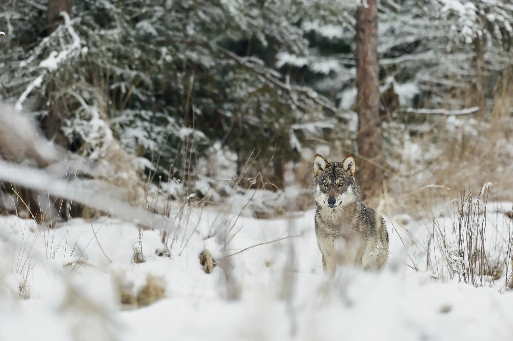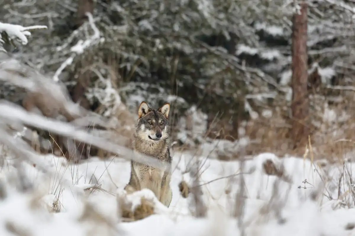 Tak som zvolil taktiku. Jedno skoré ráno sadám pod strom, na častý prechod vysokej zveri. Fotoaparát položím na statív, cez seba prehadzujem maskovaciu sieť a čakám. Črieda jeleníc prechádza okolo 8:00 ráno, urobím si zopár pekných fotiek a čakám ďalej. Dúfajúc, že sa potvrdí to čo som si myslel. Dlho sa nič nedeje a sedím už 6 hodín v teplotách tesne pod nulou. Po obede začnú sojky ohlasovať pohyb. Budem mať šťastie, myslím si v duchu. Je to ten vlk, ktorý stále chodí v stope vysokej zveri? Áno. Je to zrejme on. Neverím, ide presne po stope jeleníc. Na chvíľku si predo mnou sadne a ja mám možnosť prežiť nádherné chvíle v spoločnosti šelmy Vlk dravý ( Canis lupus ).