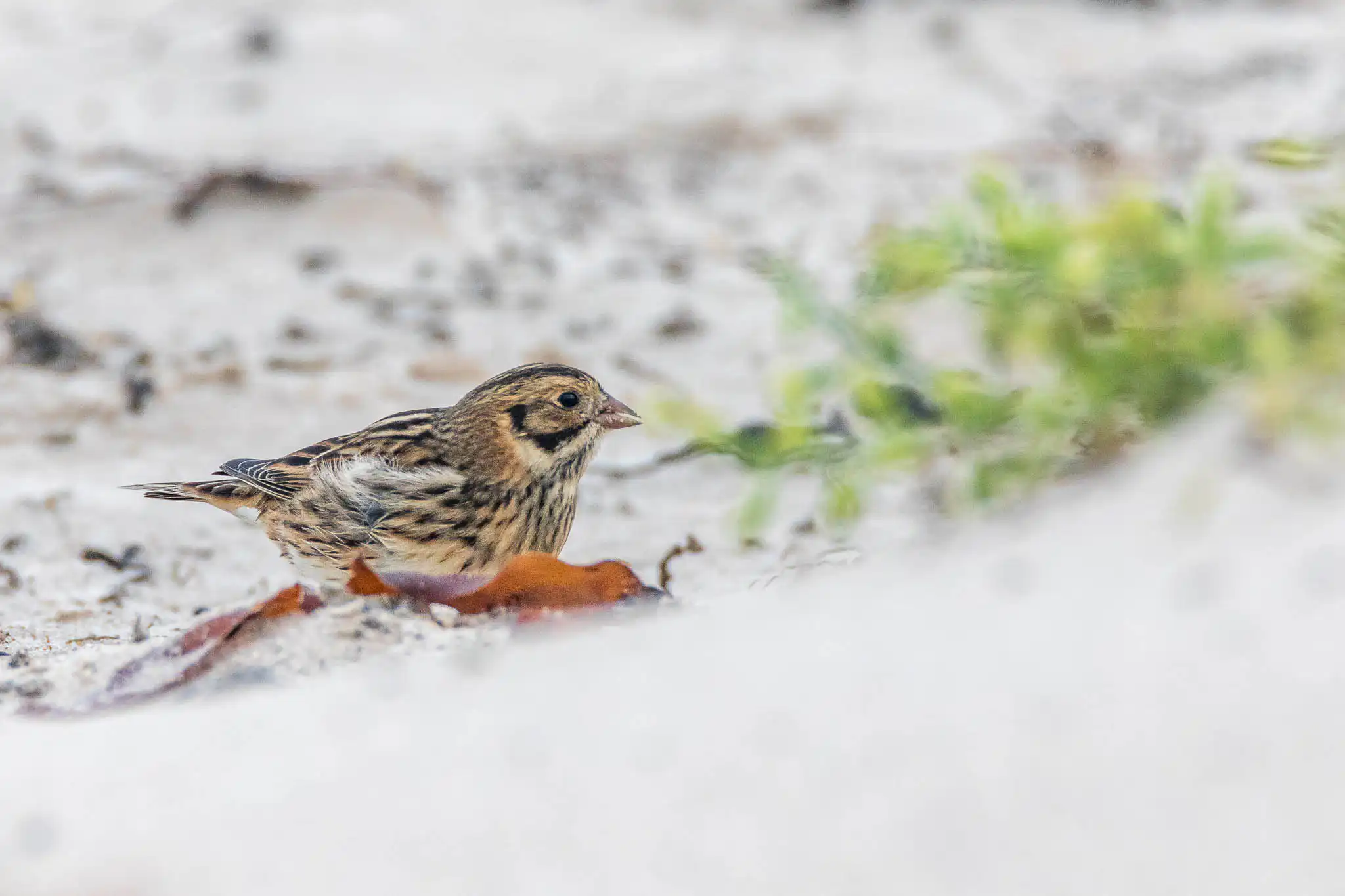Pomalu přicházíme na Nordstrand a mě hned upoutává podivný zvuk, který vydal pták odletující kousek ode mě. Chvíli mžourám dalekohledem a – vidím ho! Strnad severní. Moc jsem doufal, že se nám tento druh podaří vidět a vzhledem k tomu, že patří k poměrně běžným hostům právě této lokality v tento čas, nebylo to ani velkým překvapením. Strnad není plachý a pohybuje se spolu s linduškami lučními na písčité pláži poblíž mola, občas přeletí do nánosů chaluh bezprostředně u moře. Snažíme se ho fotit, ale není to žádná legrace. Je rychlý a často se přemisťuje. Na molu se kromě racků a kormoránů pohybuje i pár ústřičníků, kterých nakonec počítáme asi devět. Ondra nás najednou volá k chaluhám vyvržených mořem a ukazuje nám kulíka zlatého, který zřejmě vyčerpán tahem odpočívá pár metrů od nás. Všímáme si, že na molu běhá ještě další bahňák a můj lifer, jespák mořský.