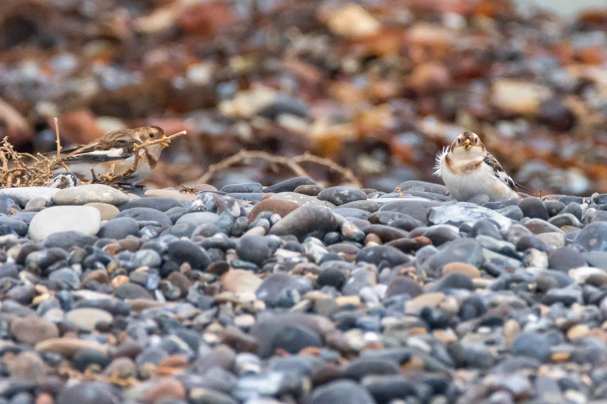 Kromě skřivanů se na stejném místě ukazují dvě sněhule. Moc se jim kvůli skřivanům nevěnujeme a necháváme je na později. Jak rychle se objevily, tak rychle taky mizí a už je znovu nevidíme.