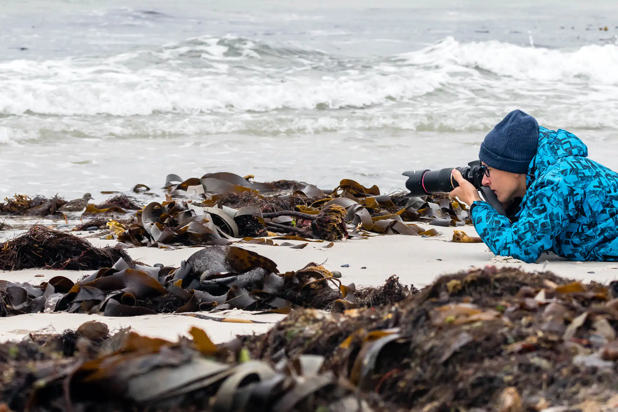 Když se dosyta vynadíváme na strnada severního a na dění kolem mola, vydáváme se po pláži dál. Počet lindušek lučních je neuvěřitelný. Snažíme se hledat lindušku zelenou, ale stejně jako po celou dobu výpravy neúspěšně. Zato se ale ukazuje další očekávaný lifer, linduška skalní. S linduškami tu je i pár konipasů bílých a až na konci pláže i jeden konipas horský. Na vodě plavou všudypřítomné kajky, ale i jedna potáplice malá. V dálce vidíme lovit tereje. Z vln vystrkuje hlavu několik tuleňů kuželozubých.