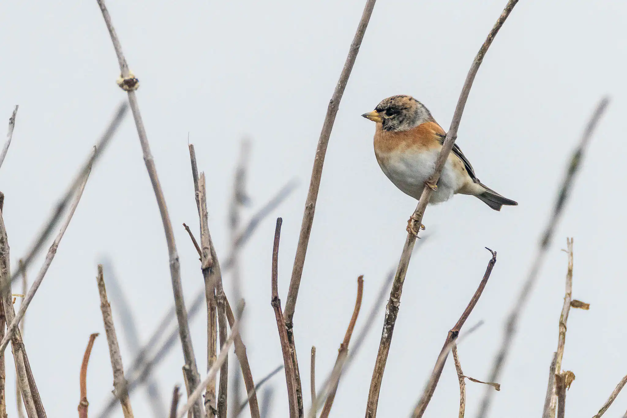 Z pobřeží se přesouváme do vnitrozemí a jdeme hledat pěvce. Na ostrově rostou zejména nižší keře, nejsou tu skoro žádné stromy. Nejvíce ptáku se soustřeďuje zejména v okolí několika jezírek, která se tu nachází. Je tu mnoho budníčků menších, králíčků obecných, ale daří se nám najít dokonce i jednoho králíčka ohnivého. Sem tam se ozve střízlík nebo červenka a přes cestu přeletí kos.