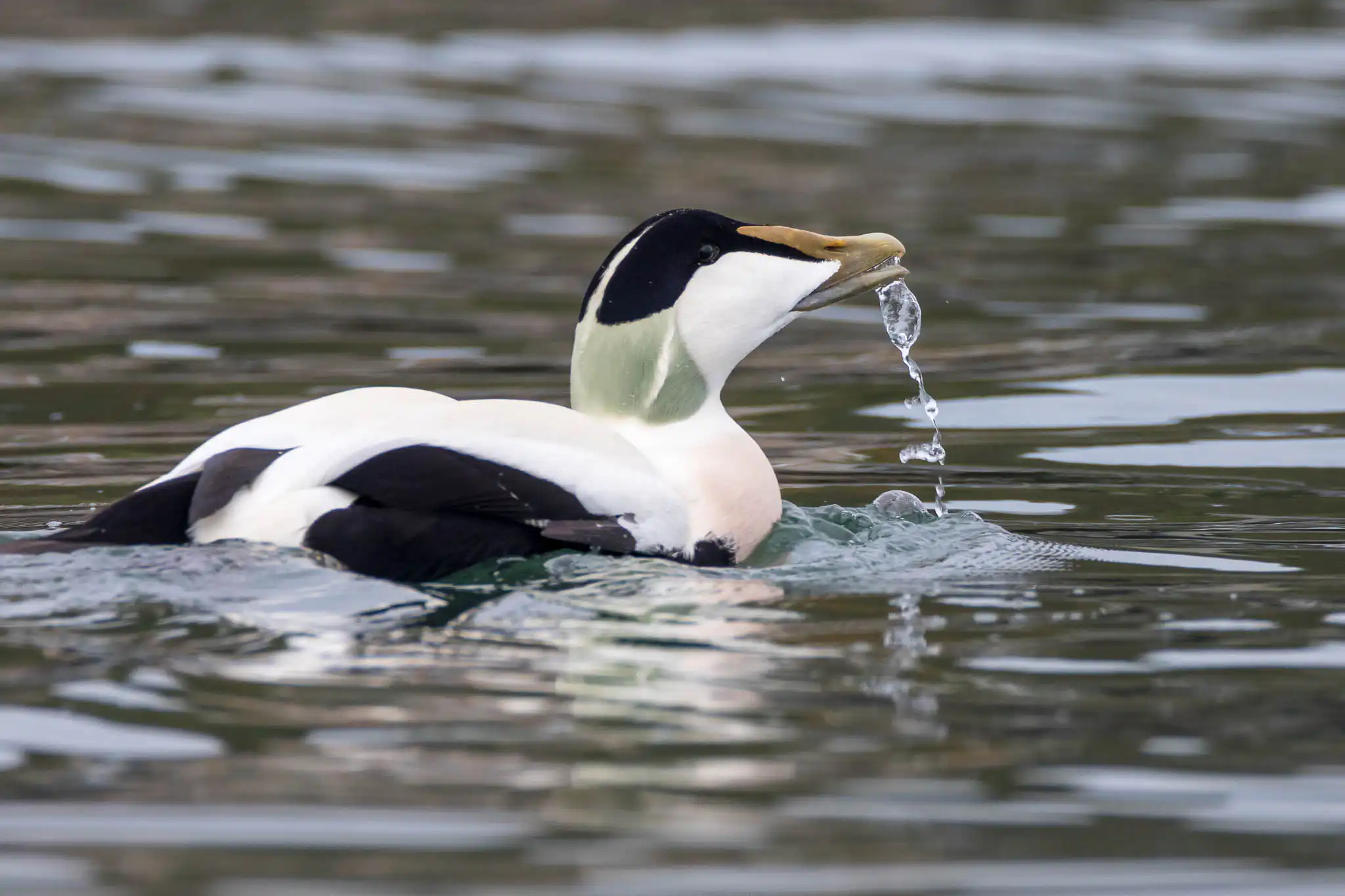 Pomalu se vracíme do přístavu, kde se mi daří sejít až na úroveň hladiny, kde můžu krásně “z očí do očí” vyfotit pár kajek mořských. Tyhle potápivé kachny mě od dětství fascinovaly a pozorovat je takto zblízka je pro mě další ze splněných snů. Sameček se krásně předvádí, čistí si peří a protahuje křídla.