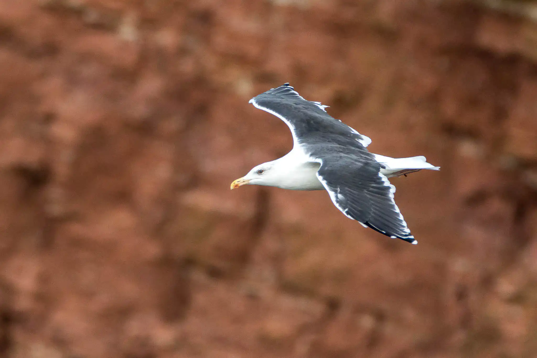Zatímco se chystáme vylézt po dlouhých a prudkých schodech nahoru na útes, Libor se od nás odpojuje. Bohužel si nese stále strasti úrazu kolene a proto dává přednost cestě zpět do parku. My ostatní se škrábeme nahoru. Vítr je tu opravdu neskutečný, stativáky neodkládáme tak, že bychom je klasicky postavili, nýbrž je třeba je složit a položit na zem a to i s mým poměrně hodně těžkým manfrotto stativem. Odměnou nám je nádherný výhled na moře, ale hlavně několik terejů, kteří sedí na skalách dokonce jen pár metrů od nás. Jedno mládě a dva dospělí přilétají až neuvěřitelně blízko a my tak okusíme pověstnou neplachost těchto mořských ptáků. Kromě přeletujících racků a kormoránů ale nic dalšího nevidíme a větrem bičované louky jsou až na několik lindušek prázdné.