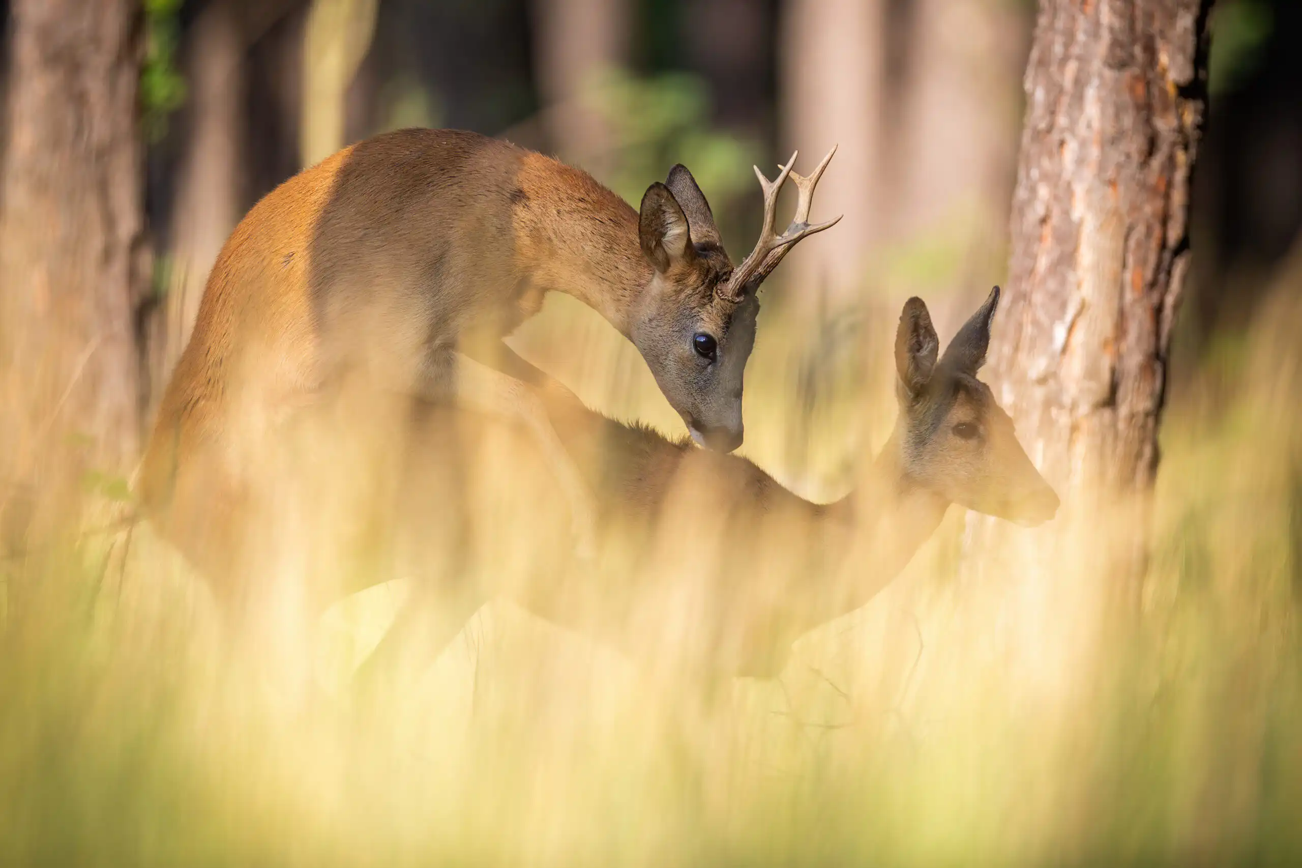 Podľa fotopascí som vedel, že srnec sa posledné dni zdržiaval v blízkosti srny. Rozhodol som sa opäť skúsiť šťastie a do tejto lokality som sa vybral ešte niekoľkokrát. Srnca so srnou som pozoroval prakticky každý deň, a aj keď sa pravidelne párili, pre vysoký podrast sa mi nepodarilo urobiť ideálny záber.
