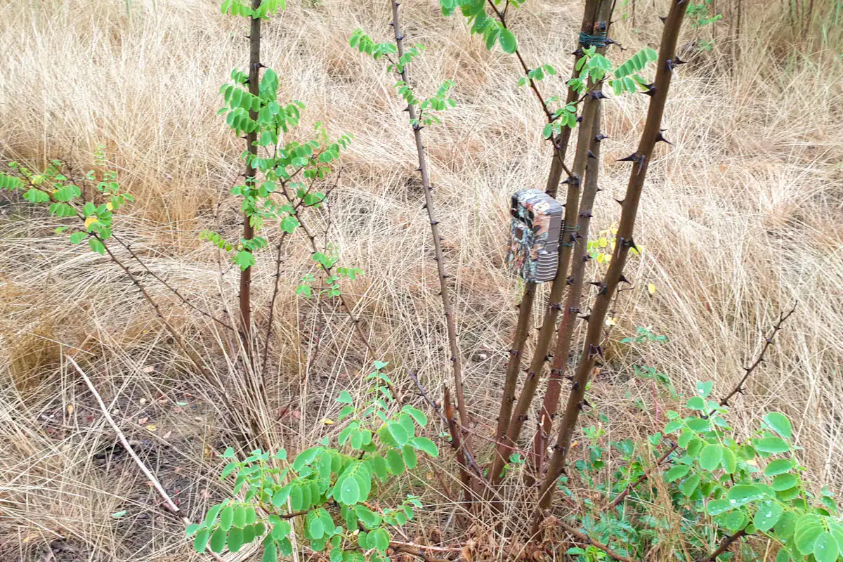 Aby som lepšie spoznal miestneho srnca a zistil, ktoré miesta v rámci svojho teritória používa najradšej, osadil som do okolia niekoľko fotopascí. Bol to trochu oriešok, pretože tam, kde bolo srnčiu aktivitu poznať najviac, sa nenachádzali žiadne hrubšie stromy. S niektorými fotopascami som preto musel improvizovať a umiestnil som ich aj na veľmi tenké agáty. Aby som predišiel množstvu planých poplachov spôsobených pohybom kríčkov vo vetre, zviazal som dva tenké kmene dokopy a upevnil na ne fotopascu.