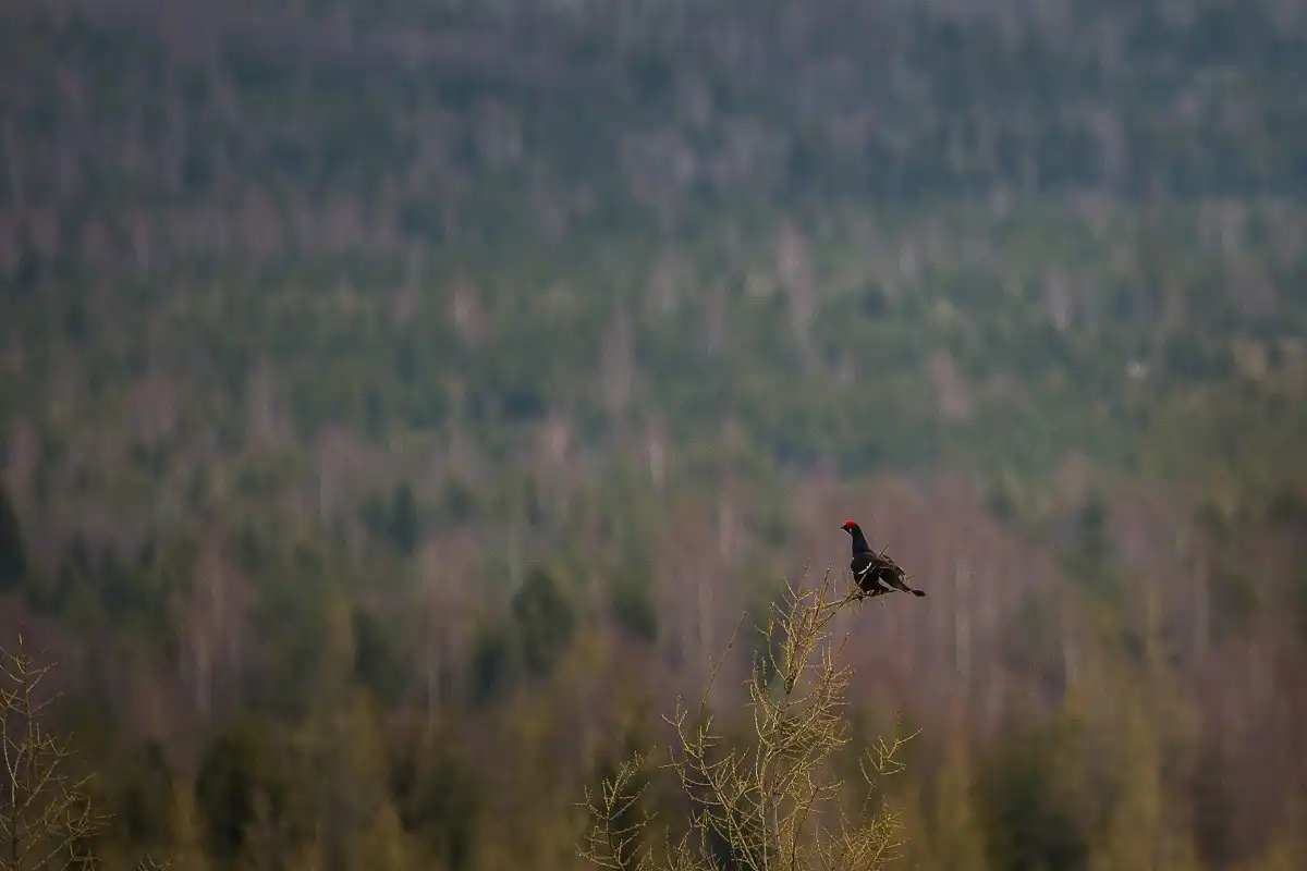 Mesiac apríl je pre každého fotolovca veľmi zaujímavý mesiac v ktorom sa dáju pozorovať a nafotiť u nás počas toku veľmi vzácne a chránené druhy vtáctva . Nad hranicou lesa alebo na rašeliniskách prebieha tok holniakov – Tetrov hoľniak / Tetřívek obecný ( Lyrurus tetrix ) .