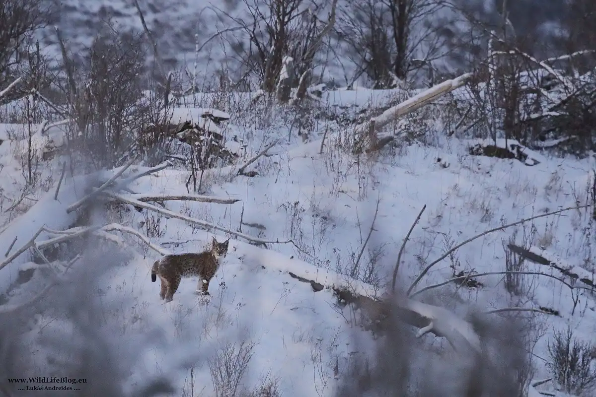 Príbeh na hrebeni sa odohral tesne pred Vianocami a bol to pre mňa pekný darček. Stopy na hrebeni naznačovali že sa rys zdržiava už dlhšiu dobu na strmom skalnatom hrebeni. V mesiacoch december a január sa v tatranských lesoch nedá dlho vysedávať. Denné teploty sú často nízke a večer prichádza mráz ktorý je v lese pekne cítiť. Schádzali sme s kamarátom už z hrebeňa dole a zasa bez akéhokoľvek pozorovania rysa. Pred nami bola už posledná časť strmého svahu keď som už takmer po tme zbadal rysa. Neviem odkiaľ prišiel, no stál tam predo mnou. Priložil som hliadačik k oku urobil zopár záberov a rys prešiel cez hrebeň a stratil sa v tme.
