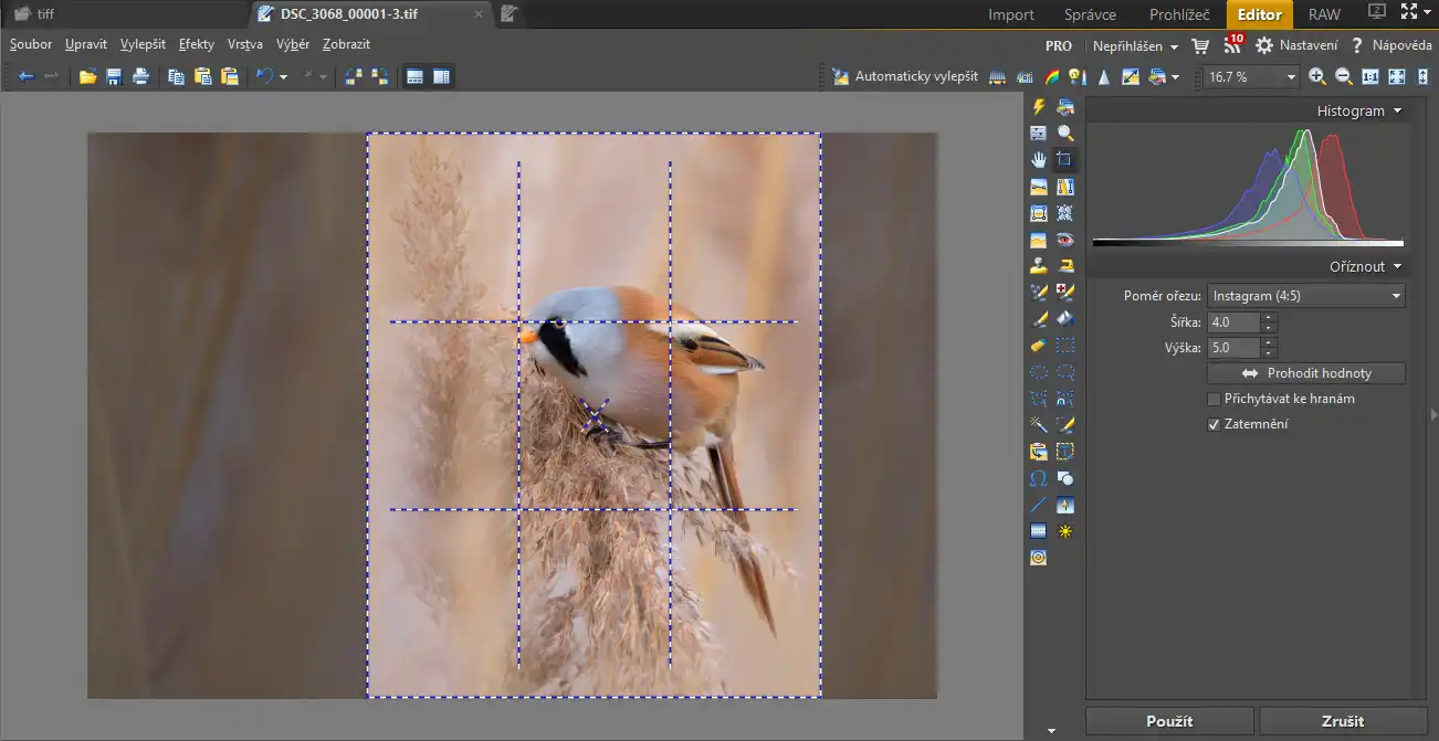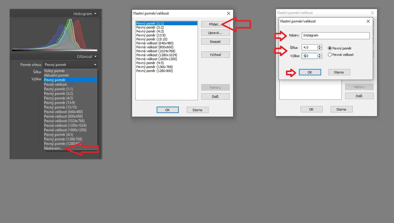 Najlepšie je si tento pomer uložiť v nastaveniach pre rýchlejšie spracovanie fotiek v budúcnosti . Nastavenie spravíme následovne , v editore klikneme na ikonu Oříznout ( klávesová skratka C ) a vo vlastnostiach Poměr ořezu – vyberieme možnosť Nastavení . V nastaveniach klikneme Přidat , zadáme názov napr. Instagram, zadáme šírku : 4 a zadáme výšku : 5 . Potvrdíme to kliknutím na OK . Graficky je to zobrazené v obrázku č.2 – Nastavenie pomeru strán . A môžme orezať vybratú fotografiu ktorú chceme publikovať na instagrame obrázok č. 3 .