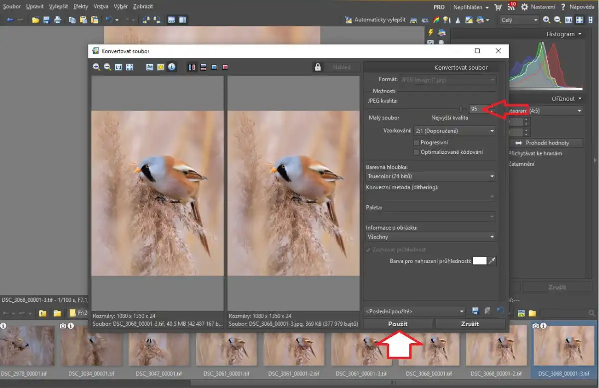 Nakoniec nastavíme kvalitu , nenechávajte 100% sú to potom zbytočne veľké súbory .Ja sa držím okolo 95% … obrázok č.8 finálne nastavenie kvality