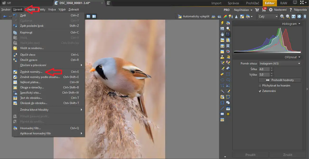 Po orezaní si fotku zmenšíme na požadované 1080px ktoré môžu byť použite na Instagrame . Takže klikneme Upraviť – Zmeniť rozmeřy podľa obrázku č. 4