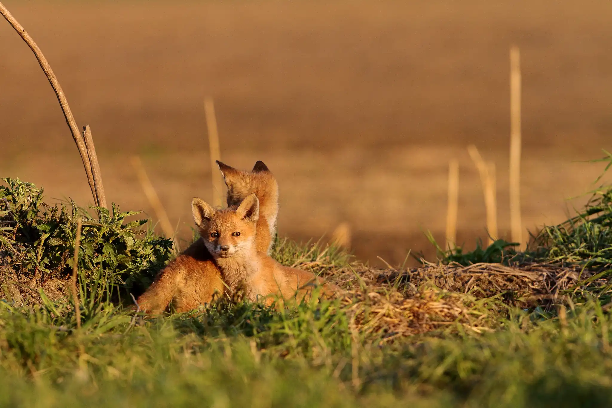 Prvé spoznávania okolia prebieha zábavnou formou. Sú to šteniatka ktoré nemajú žiadne skúsenosti s predátormi. Často sa stávajú korisťou Orla Skalného alebo túlavých psov. Každým dňom života sú odvážnejšie a skúmajú prostredie niekedy aj veľmi ďaleko od svojej nory. Trojmesačné líšky už behajú takmer všade a to sa im stáva osudné najmä na cestách, kde prichádza o život viac ako 30% novonarodených šteniat.