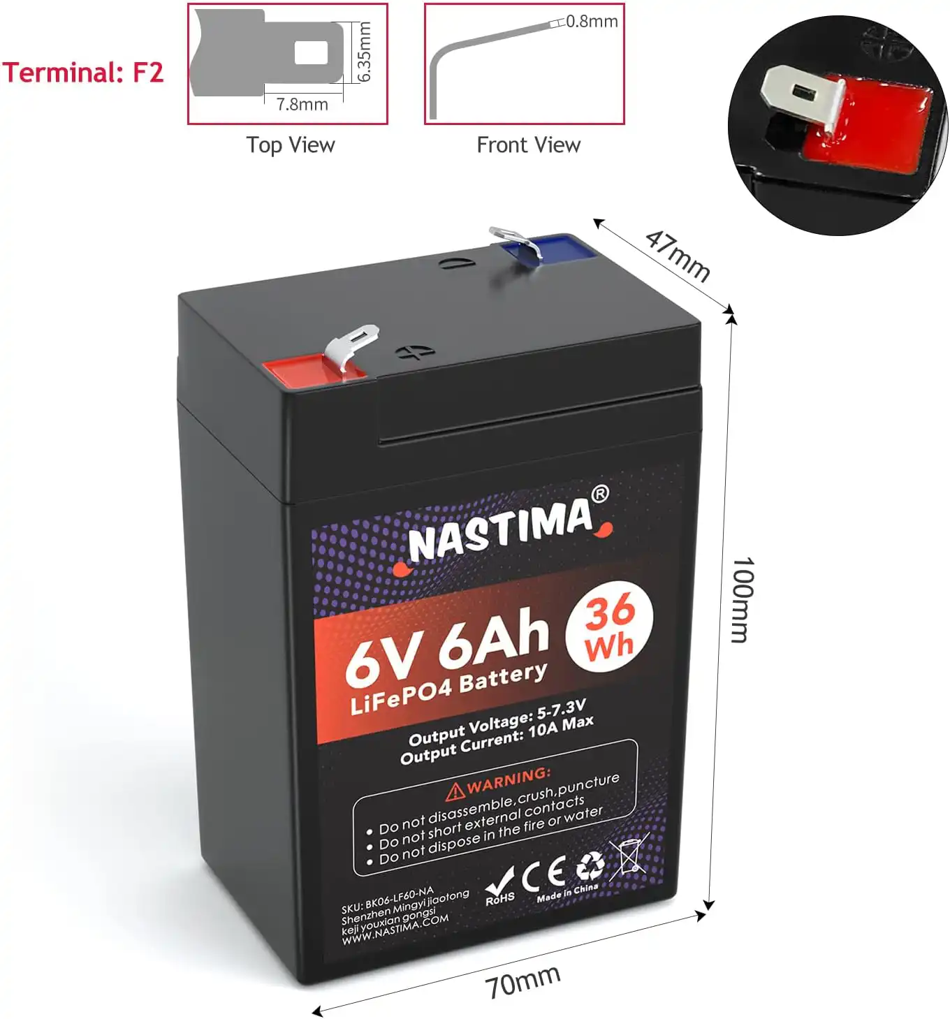 • Ľahká a plný výkon: Vďaka takmer 100% využiteľnej kapacite získate zo svojej 6 Ah batérie skutočných 6 Ah energie – bez toho, aby ste ju poškodili. Ideálna pre fotopasce , rybárske sonary, záložné zdroje alebo hračky.
