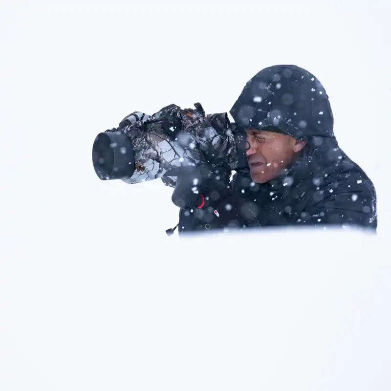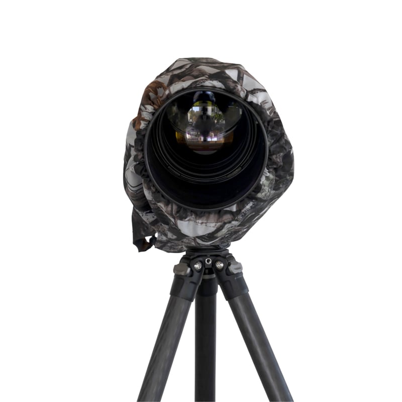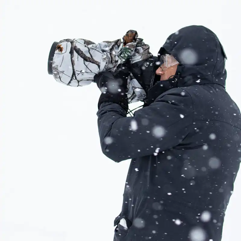 Tento Buteo Photo Gear Raincover ponúka perfektnú ochranu a maskovanie. Predná a zadná časť návleku proti dažďu sú vybavené sťahovacou šnúrkou s brzdou, takže ho môžete pripevniť podľa potreby. Na spodnej strane je pás so suchým zipsom (Velcro), ktorý umožňuje ľahké pripevnenie návleku k objektívu a zároveň ponecháva priestor pre bajonet objektívu. Použitý maskovací vzor je náš vlastný dizajn z dielne Buteo Photo Gear vzor Snow, zvnútra je potiahnutý čiernou farbou.