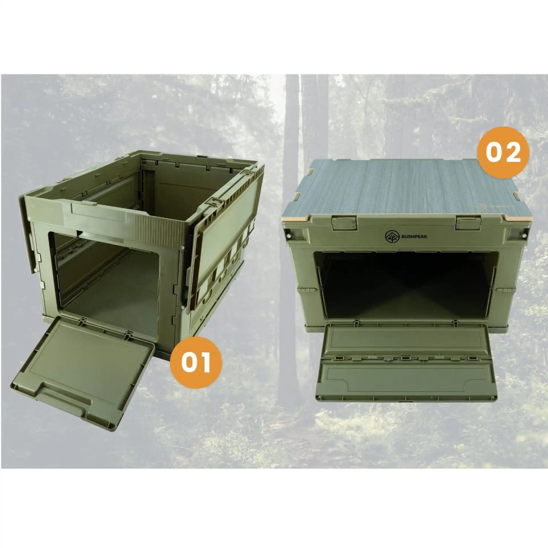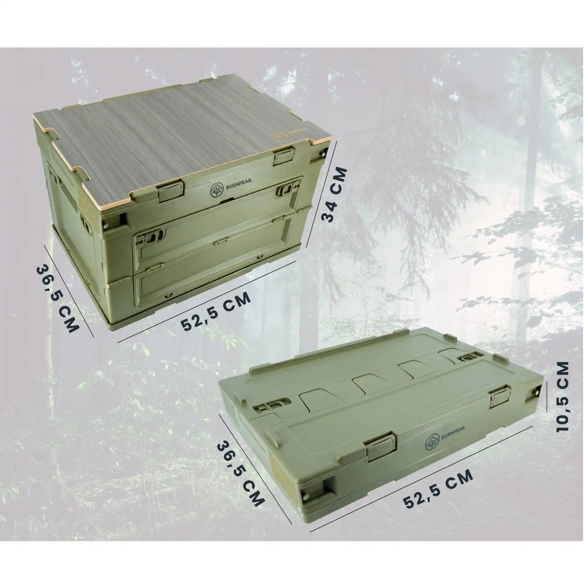 Geniálne riešenie 2 v 1: Odolný úložný box a kempingový stôl v jednom. BUSHPEAK Flexbox 50L je povinnou výbavou pre každého, kto potrebuje poriadok v aute, na chate alebo v expedičnom kempe. Vďaka stolovej doske a bočným vstupom sa k výstroju dostanete aj vtedy, keď je na boxe položený varič alebo sú debny naskladané na sebe.
