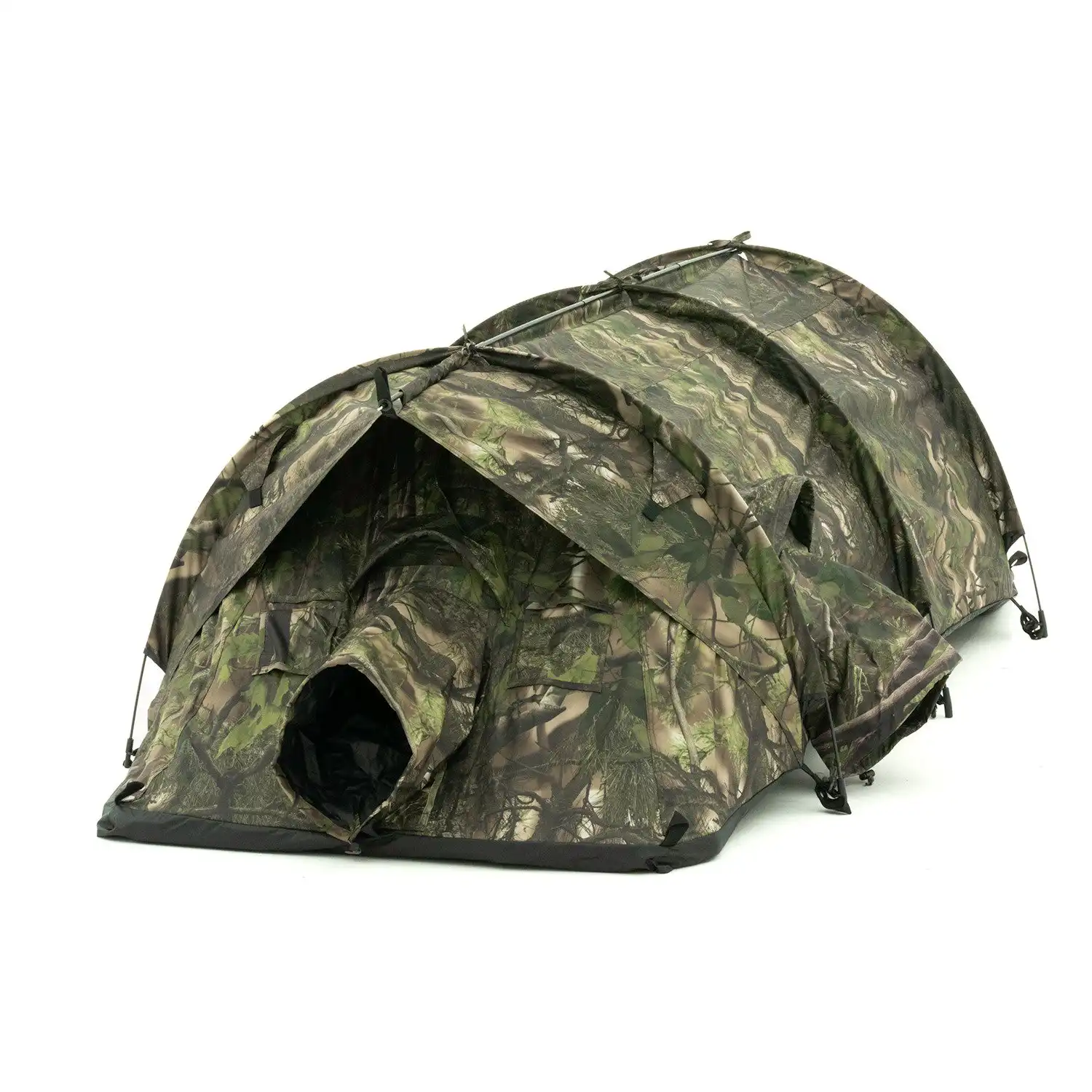 - Pokiaľ ide o kamufláž, tento stan obstojí. Vyberte si z troch prírodných vzorov – zelený, hnedý alebo trstinový – ktoré splynú s väčšinou prostredí.