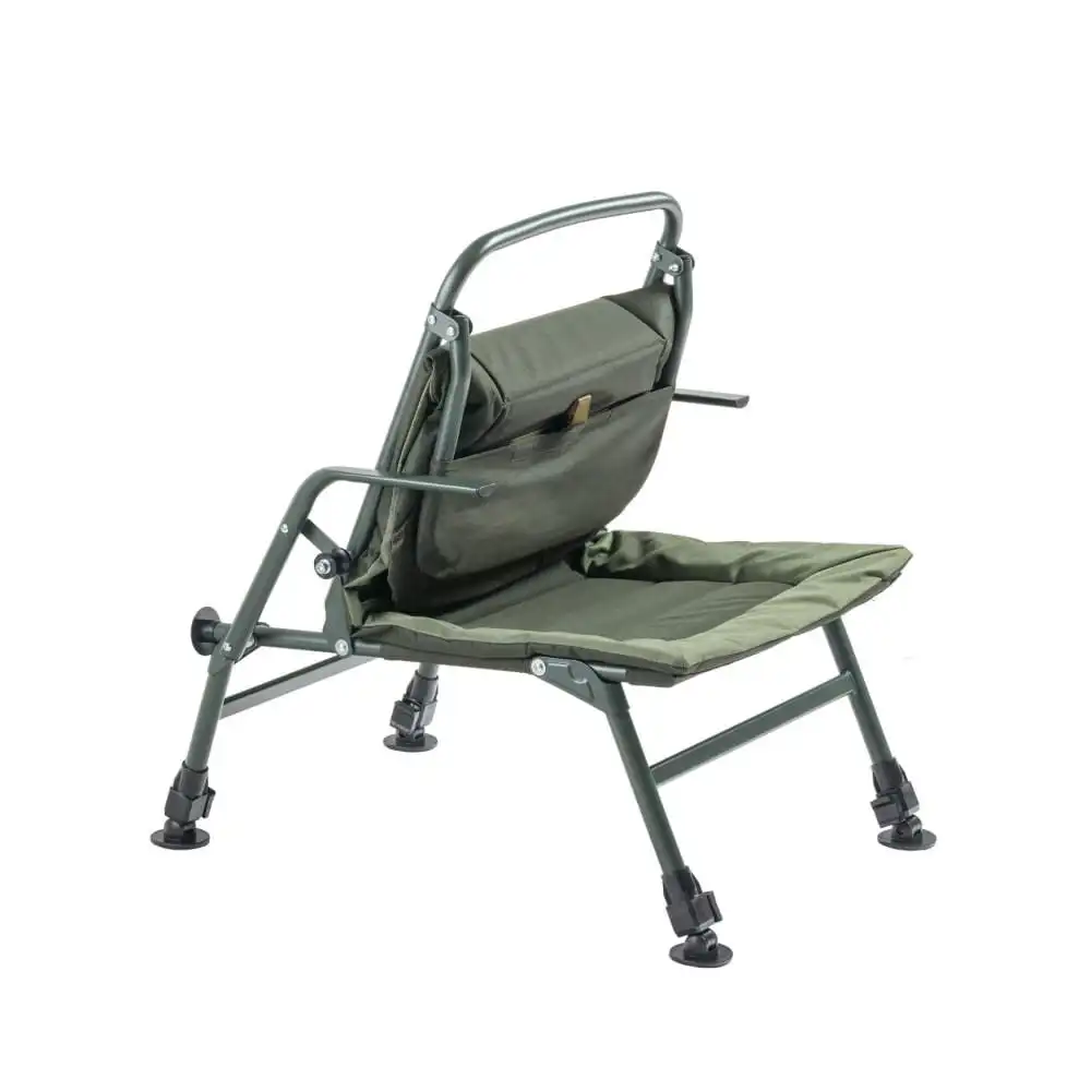Inovatívne rybárske kreslo z vlastného vývoja značky Mivardi. Vďaka unikátnemu dvojdielnemu skladaciemu operadlu ponúka mimoriadne vysoký komfort pri zachovaní miniatúrnych transportných rozmerov. Disponuje štyrmi teleskopickými nohami pre dokonalú stabilitu v akomkoľvek teréne a silne polstrovaným matracom z odolného materiálu B-POL600D.