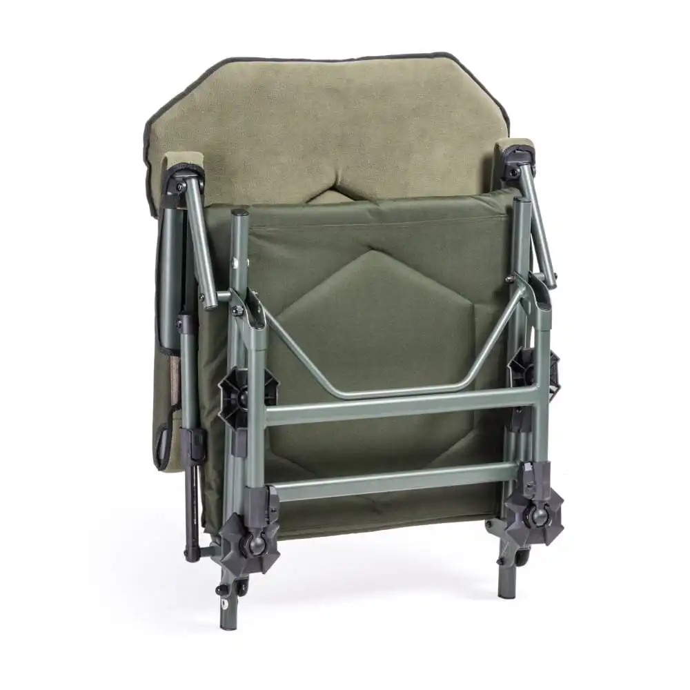 Kráľovské rozmery a nekompromisný luxus. Masívne a mimoriadne stabilné kreslo Professional Hex je určené pre rybárov, ktorí vyžadujú maximálny komfort bez kompromisov. Disponuje unikátnym matracom s novým typom polstrovania, obrovským integrovaným vankúšom a automatickým výsuvom štyroch teleskopických nôh. Systém polohovania s tlačidlovým ovládaním umožňuje precízne nastavenie sklonu operadla pre dokonalý relax.