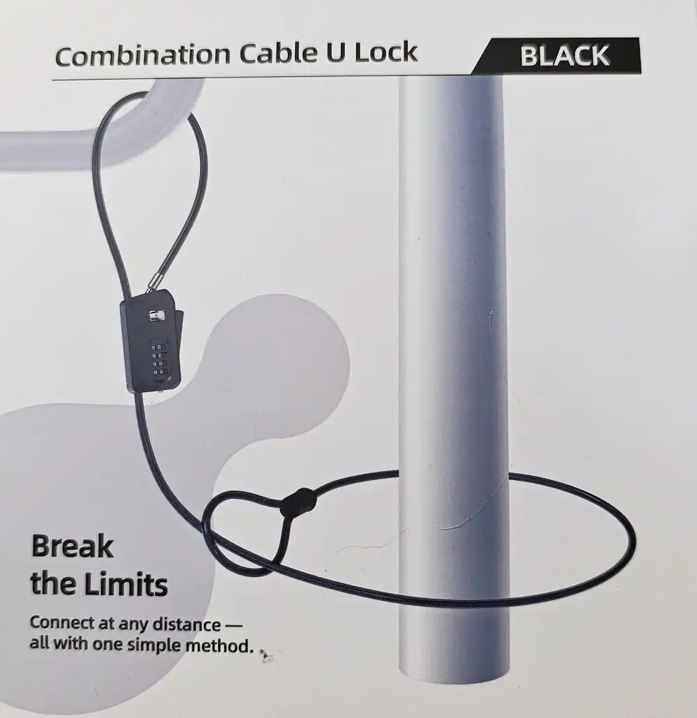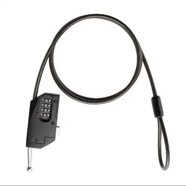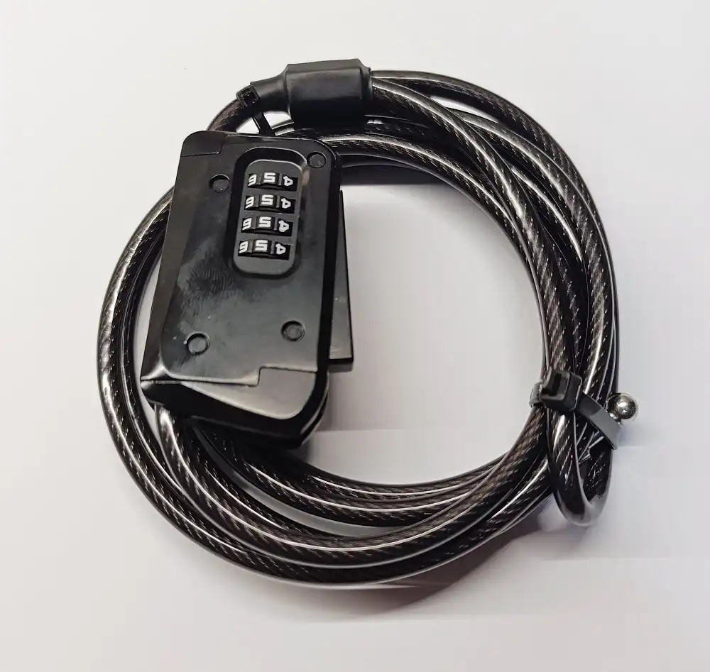 Zabezpečte svoju techniku pred krádežou pomocou 5mm oceľového lanka. Vďaka 4-miestnemu číselnému kódu (10 000 kombinácií) už nemusíte nosiť kľúče, ktoré by ste mohli v teréne stratiť.