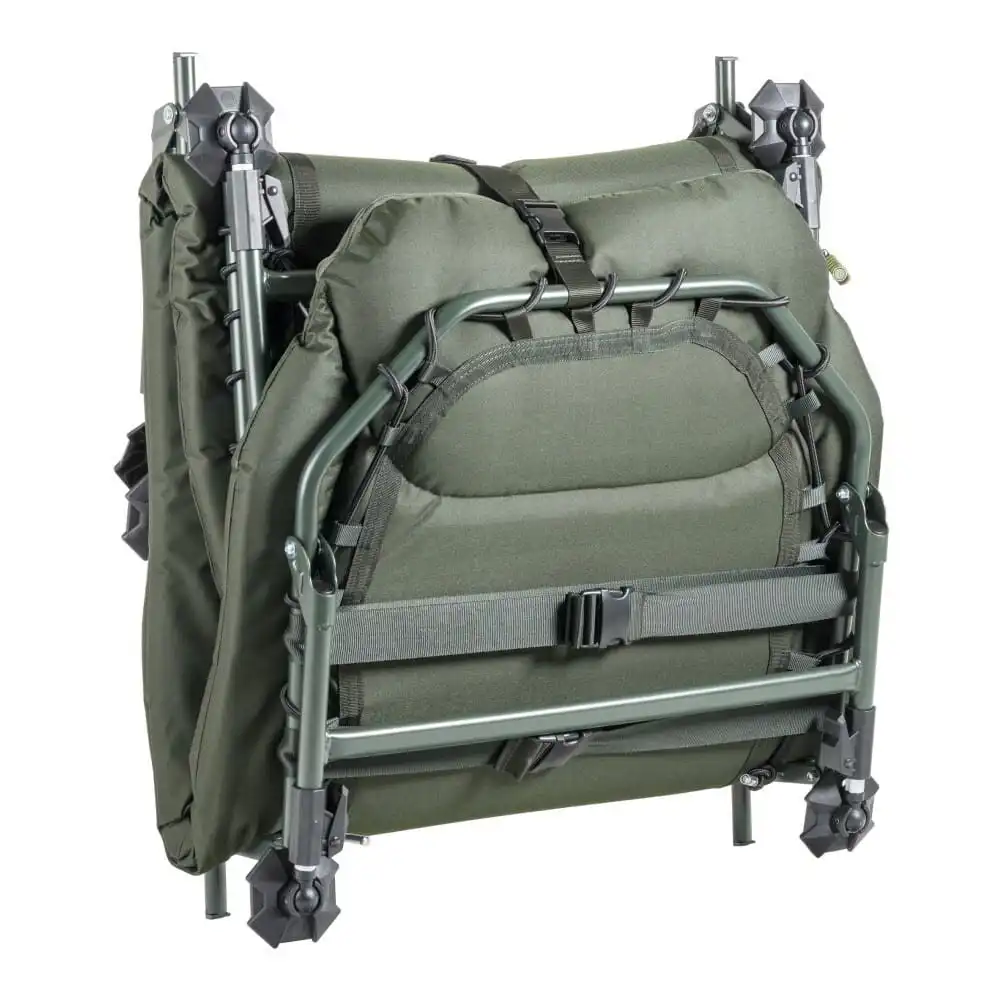 Veľký výsuv nôh: Teleskopický systém umožňuje zdvihnúť rám až do výšky 42 cm, čo ocenia rybári s dlhšími nohami alebo pri spaní v nerovnomernom svahu.