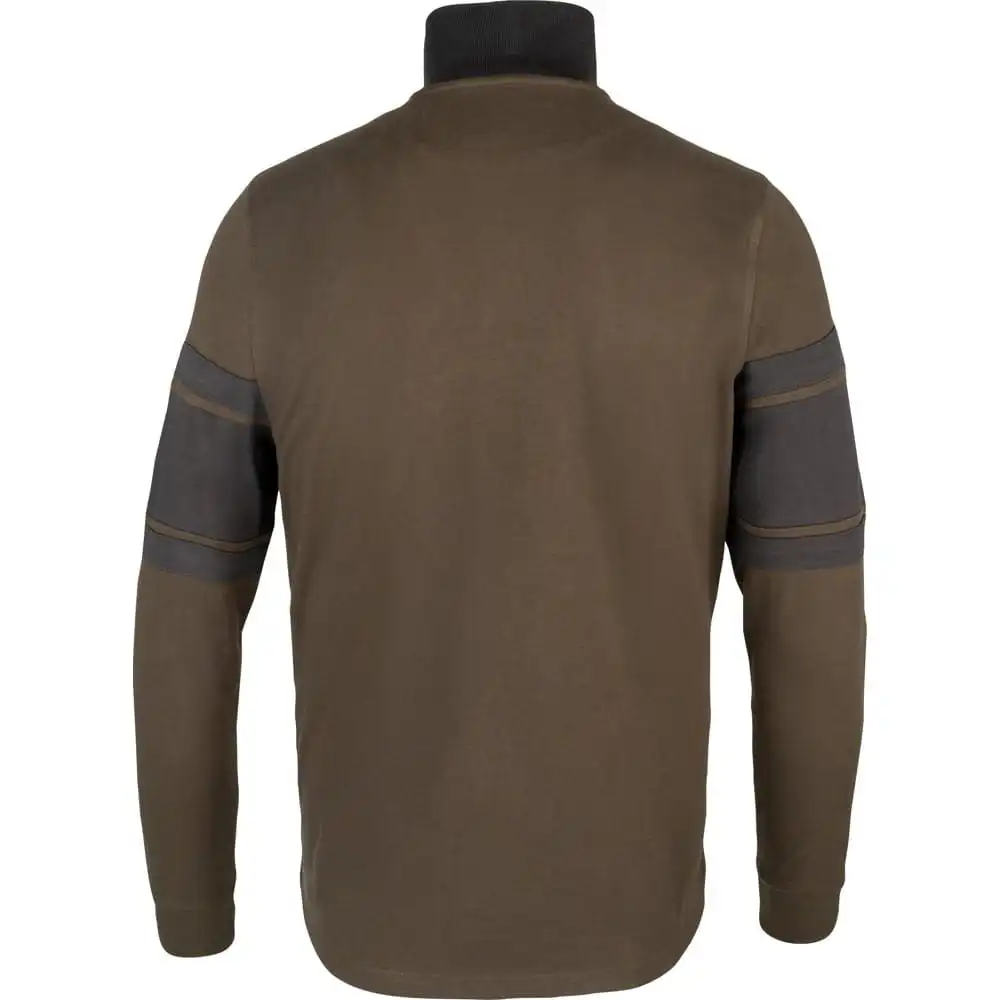 Výrazným prvkom je zvýšený stojačikový golier, ktorý spoľahlivo chráni krk pred chladom. Zapínanie je riešené štýlovým kovovým zipsom, ktorý je doplnený praktickým tiahlom v tvare kovového krúžku pre jednoduchú manipuláciu. Kontrastné panely na hrudi a rukávoch opticky tvarujú postavu a dodávajú mikine moderný šmrnc, ktorý dopĺňa subtílne logo Jack Pyke na hrudníku. Elastické náplety na manžetách rukávov zabezpečujú, že mikina perfektne sedí a neprepúšťa teplo.