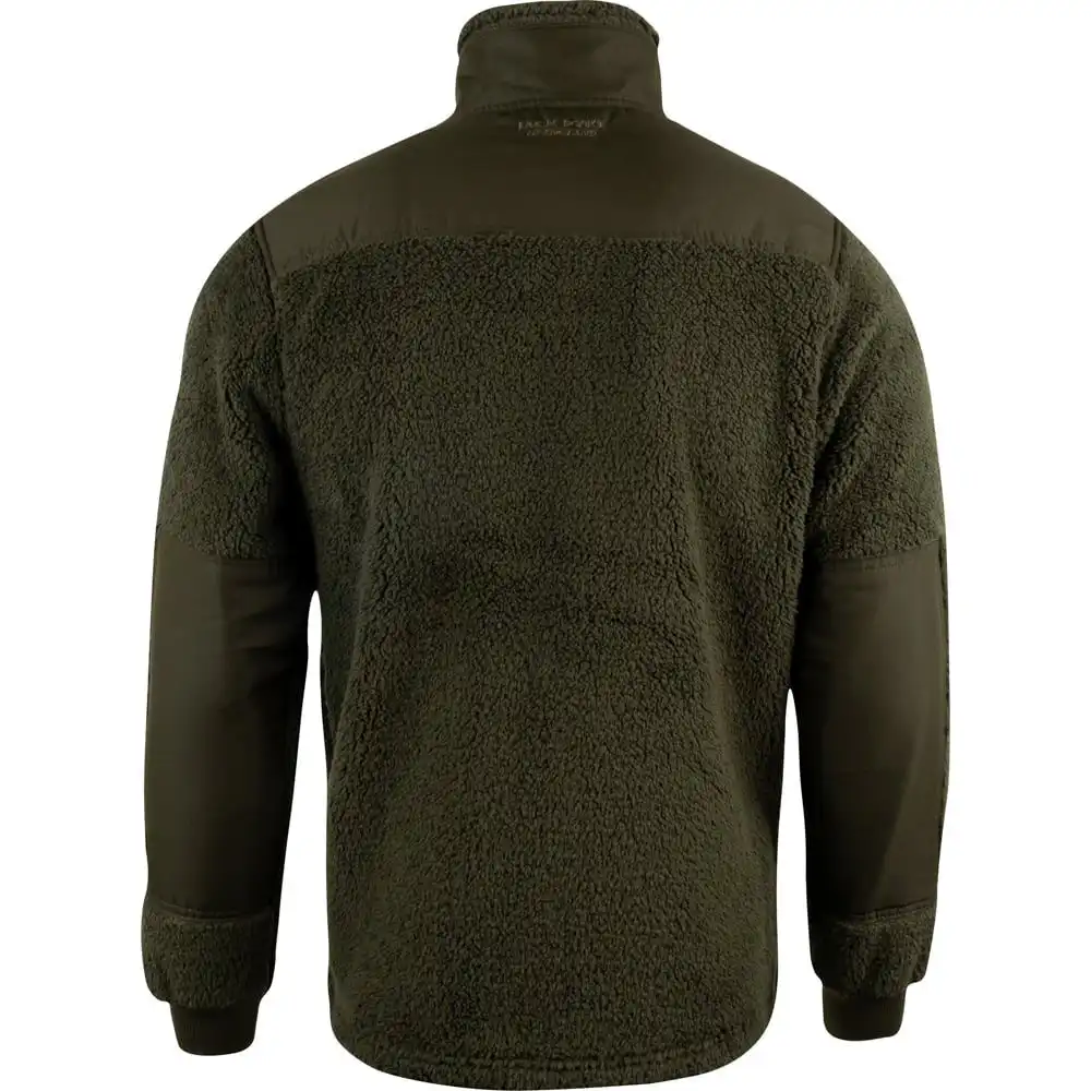Praktickosť mikiny dopĺňa dlhý centrálny zips s tiahlom pre jednoduchú manipuláciu. Vrecká na ruky sú podšité rovnakým hrejivým flísom, čo oceníte najmä v mrazivom vetre. Manžety rukávov sú zakončené elastickým úpletom, ktorý nielen udržuje teplo vo vnútri, ale zároveň bráni prieniku nečistôt. Vďaka anatomickému strihu a vysokej gramáži materiálu ide o spoľahlivý kúsok výbavy pre poľovníkov, bushcraft nadšencov aj na bežné outdoorové aktivity.