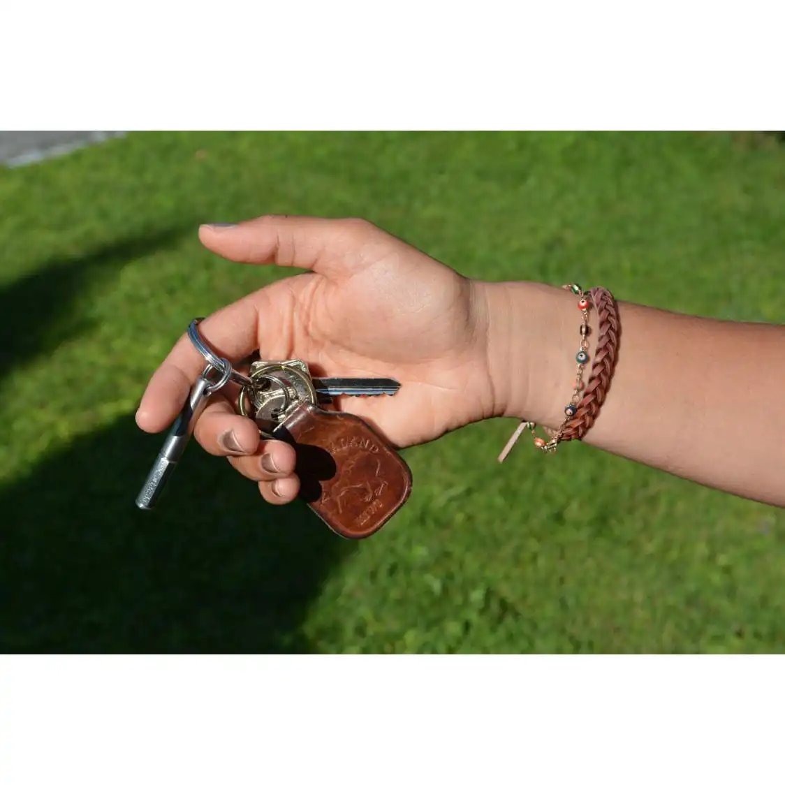 S úložným puzdrom a krúžkom na kľúče.