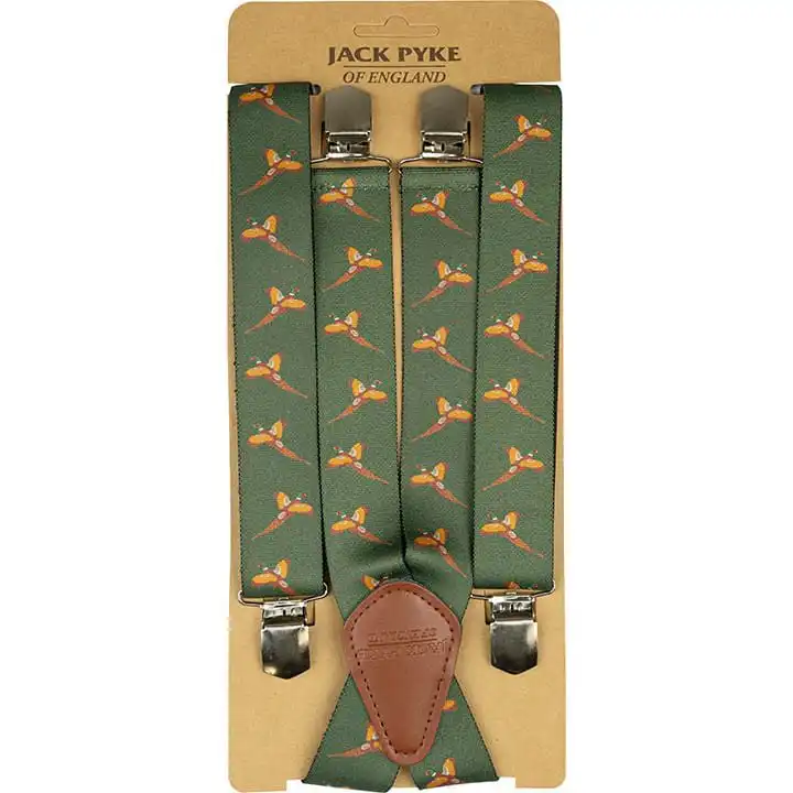 Pozdvihnite svoj poľovnícky outfit s týmito štýlovými trakmi od britskej značky Jack Pyke. Unikátny motív letiacich bažantov v kombinácii s koženými prvkami z nich robí nielen praktickú pomôcku, ale aj výrazný dizajnový doplnok, ktorý podčiarkne vašu vášeň pre prírodu a tradície.