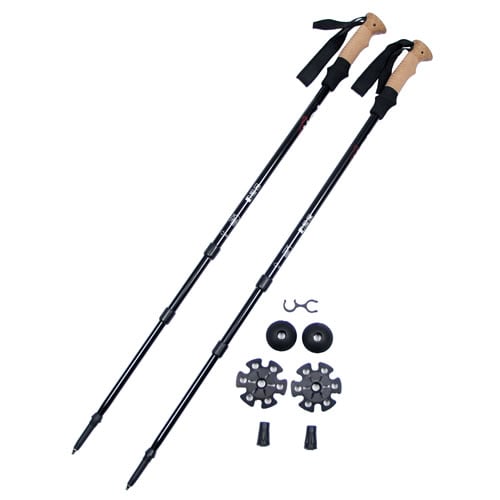 Univerzálna špička: Odolný kovový hrot zabezpečuje záber v teréne, zatiaľ čo nasadzovacia gumová “čiapočka” chráni hrot a tlmí klepanie na asfaltových cestách.