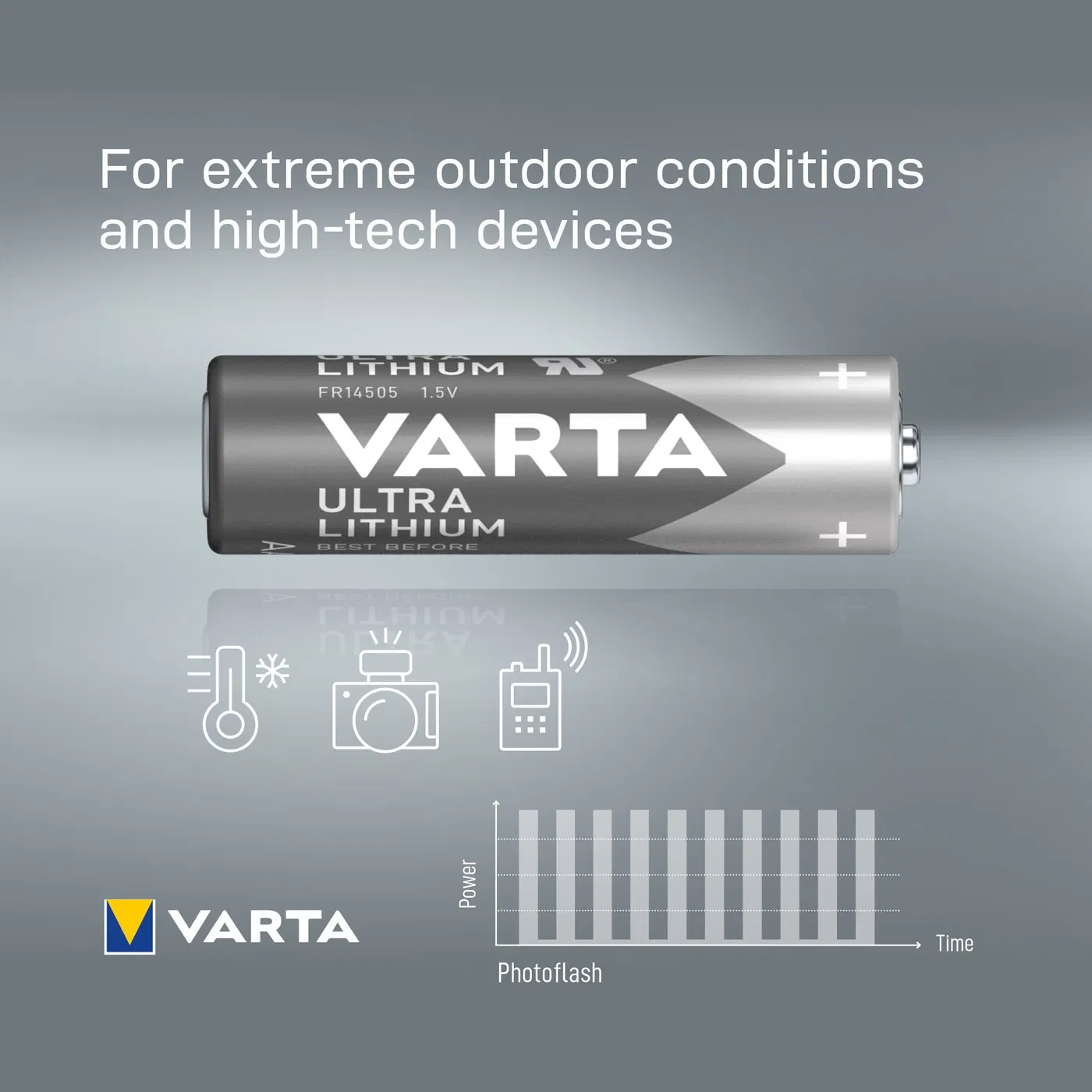 Tužková batéria VARTA Ultra Lithium AA vám zaručí dlhú životnosť a všestrannosť. Svojím poňatím sa hodí najmä do náročných teplotných podmienok. Svoje uplatnenie tak nájde pre fotopasce , GPS systémy, digitálne fotoaparáty aj v ďalších zariadeniach. Vďaka svojmu vyhotoveniu patrí do samotnej špičky v rámci danej kategórie. Vysokú kvalitu navyše garantuje, že výroba batérií prebieha v Nemecku.