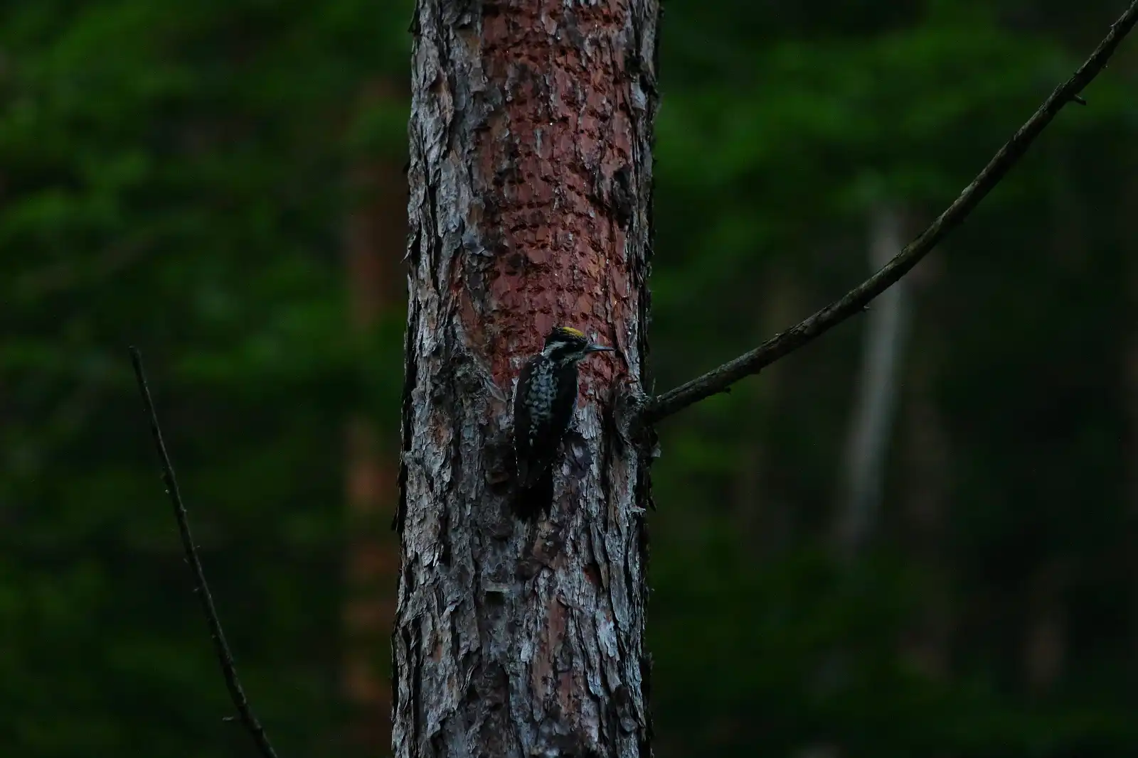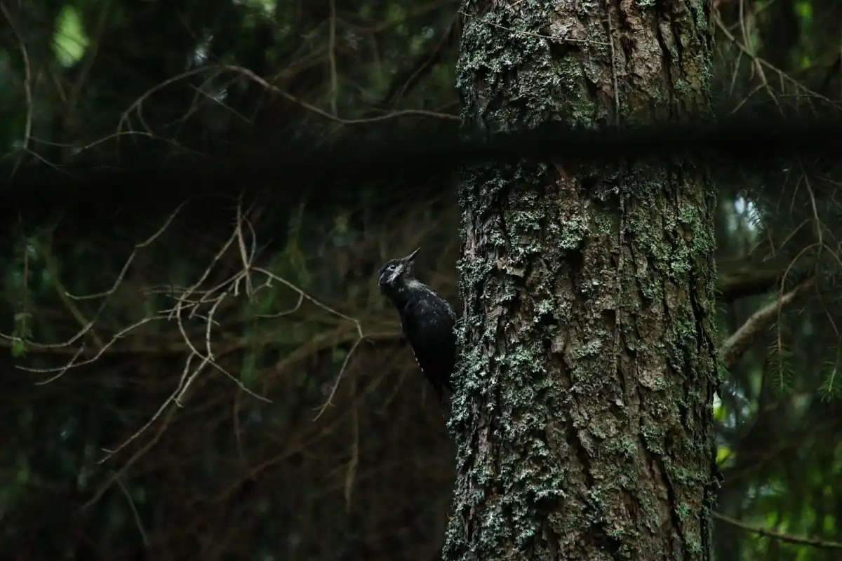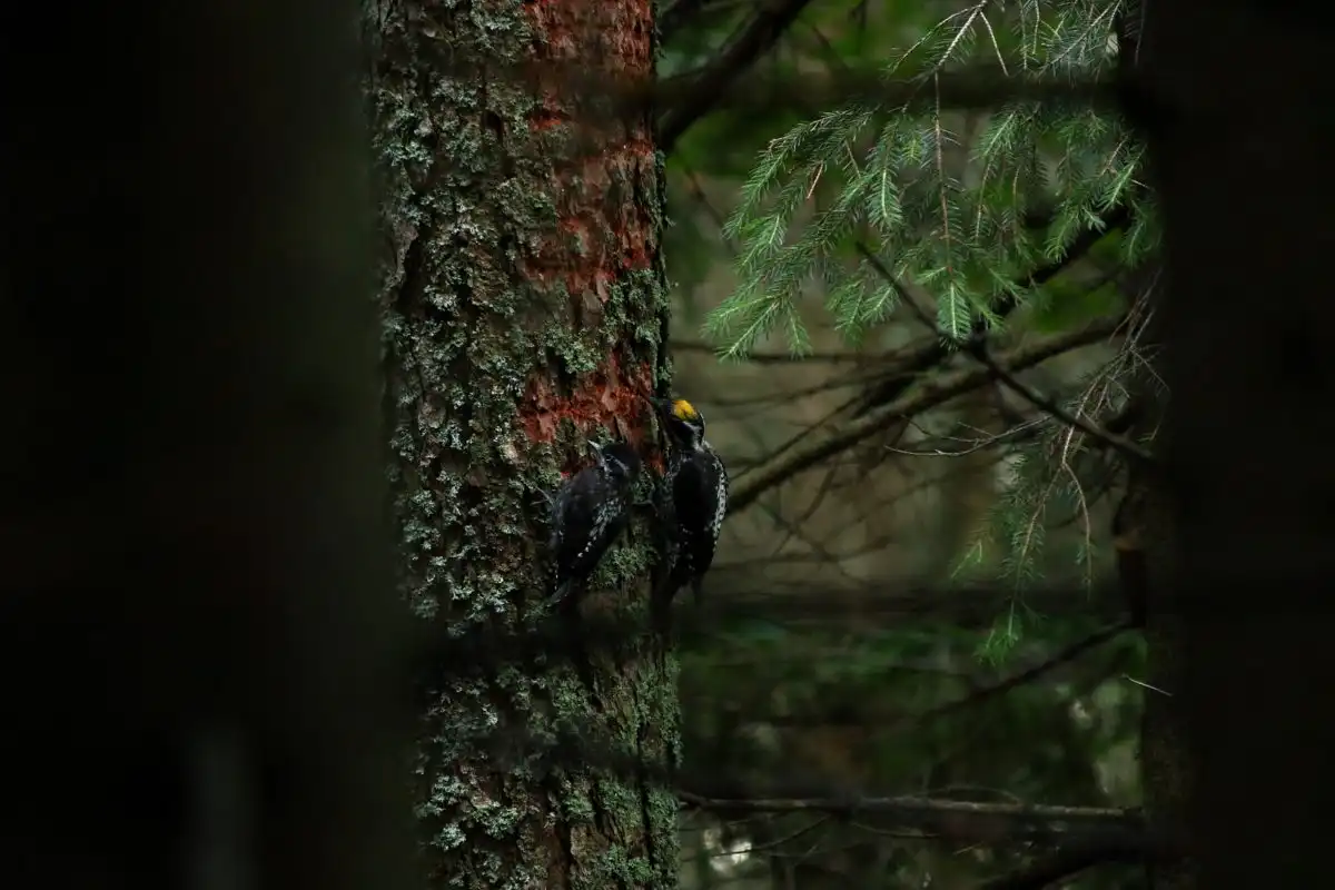 Na stromoch relatívne často možno zazrieť Ďatľa trojprstého, ktorý či už sám, alebo pri výučbe svojich ratolestí vysokej školy ďubníckej, čistí les od podkôrneho hmyzu