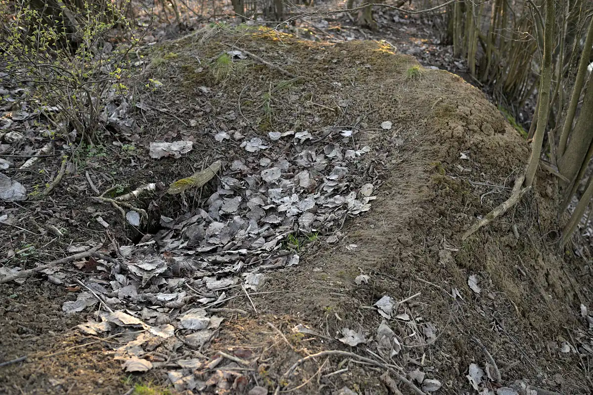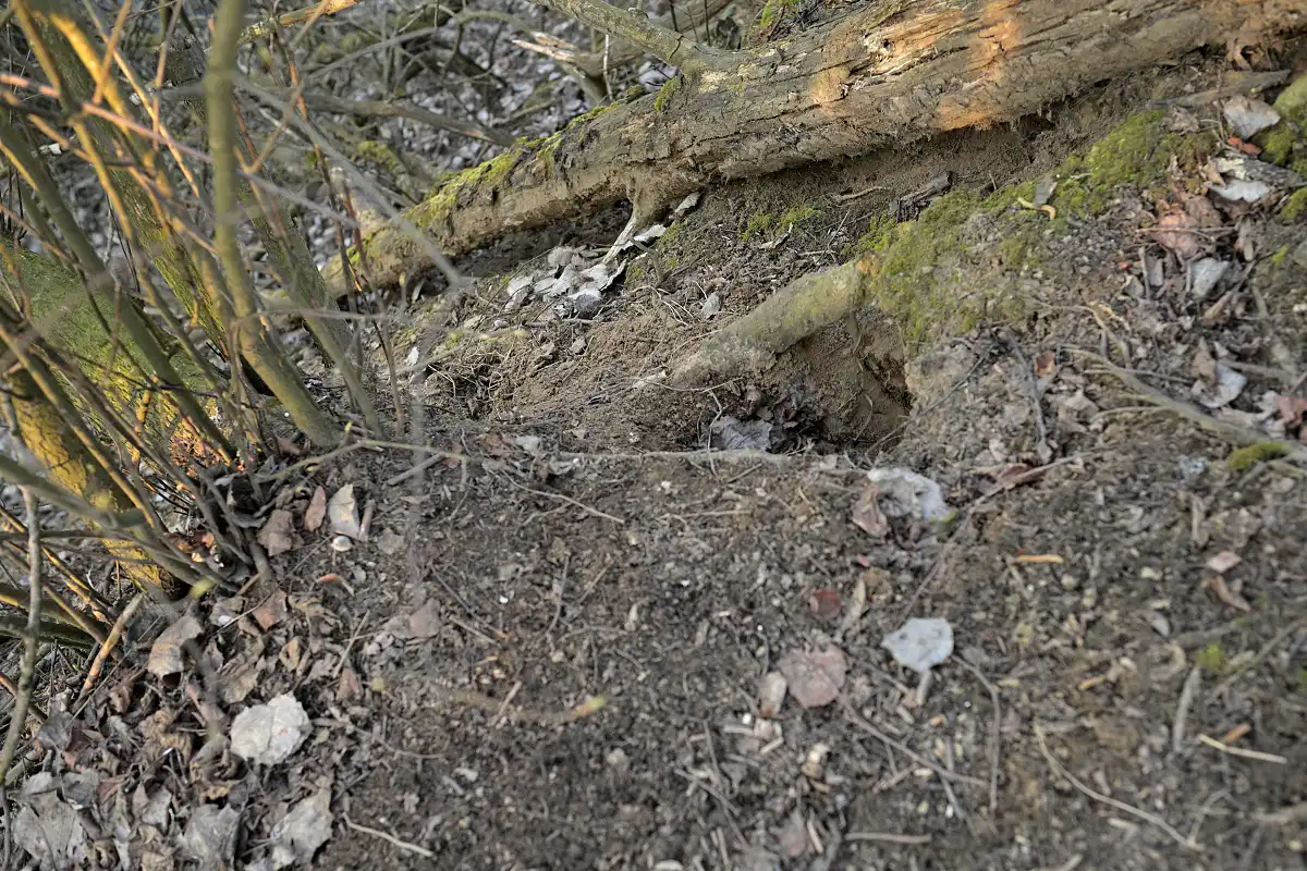 Cestou späť k autu som ešte skočil pozrieť na jednú lokalitu a tam jazvec je aktívny ale nedá sa tam fotiť kedže je to v medzi a pod tým je železnica a nad je asfaltová cesta . Tam ako vidieť na fotkách je pekne prehrabaná nora a vonku aj záchody s čerstvým materiálom .
