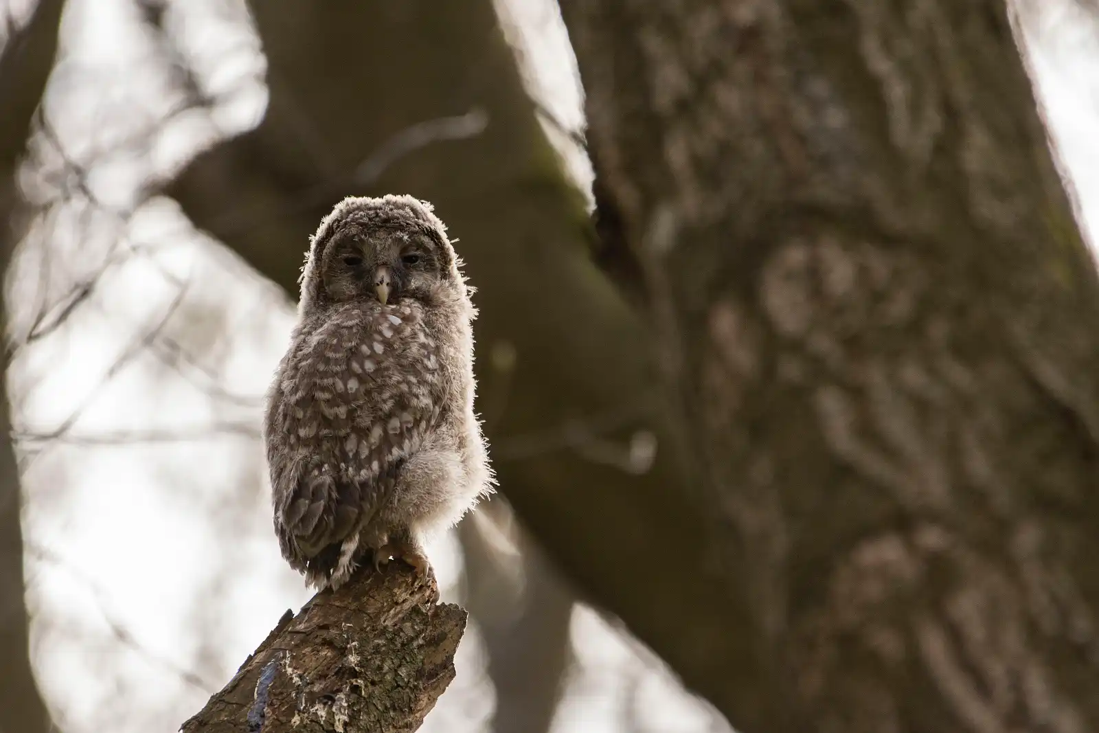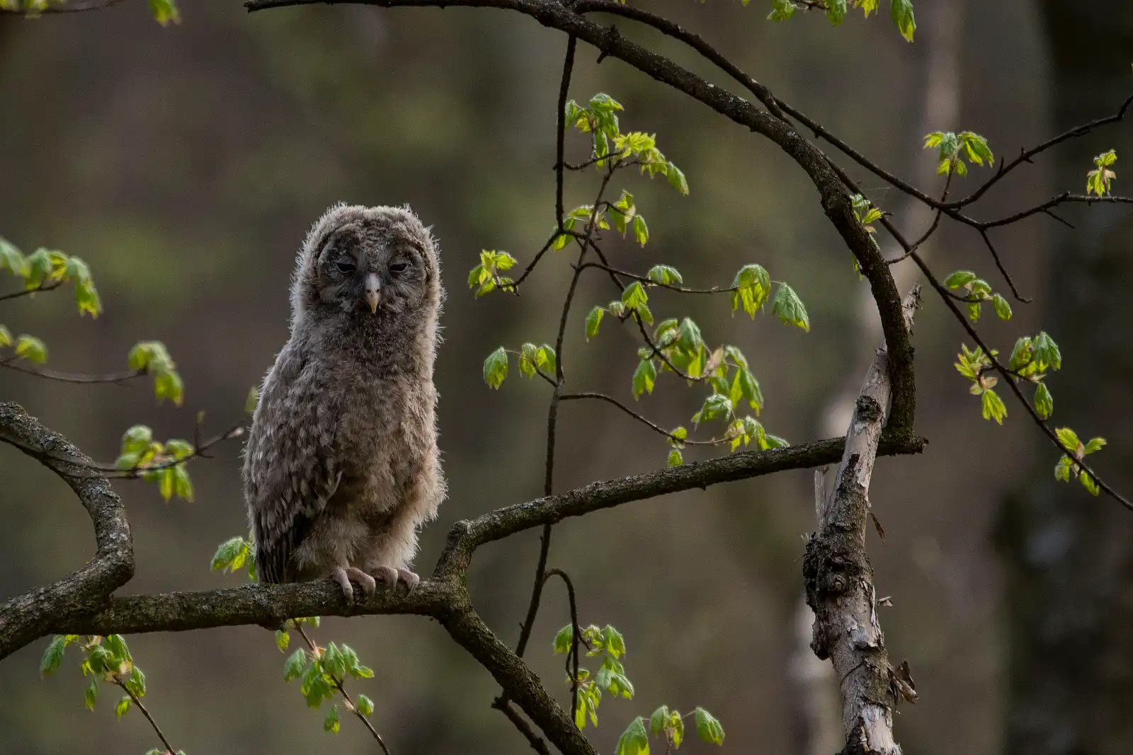 Po 3 nociach som sa tam vybral znovu pozrieť, čo zaznamenala fotopasca teraz už vyzbrojený statívom a očakávaním že sa aj sova opäť objaví. Samozrejme už pri príchode dávala o sebe vedieť. No oveľa väčšie prekvapenie ma čakalo keď som sa pozrel nad seba a prakticky som stál pod niekoľkodňovými mláďatami. Cúvol som aby som ich nejak nerušil a z menšej vzdialenosti urobil pár záberov na ktoré tak ľahko nezabudnem všetko z diaľky sledovala pozorne mama. Dúfam, že sa im bude naďalej u nás dariť.