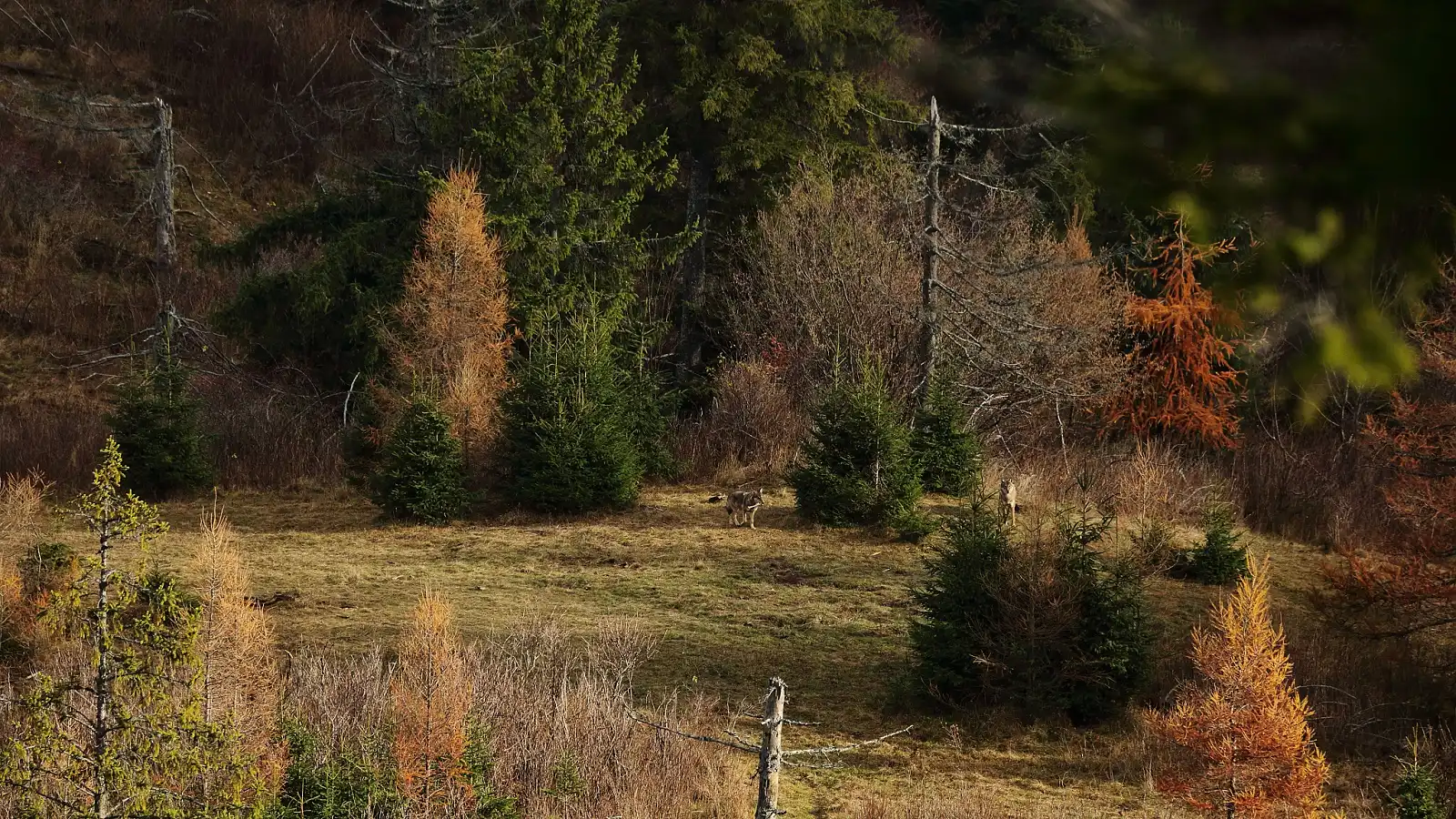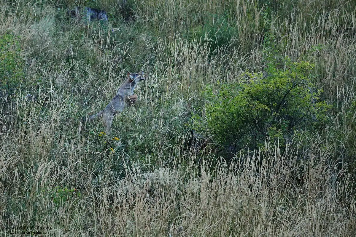 Jedno novembrové ráno ideme s kamarátom pozrieť na hrebeň a trochu si oddýchnuť. Ja mu ukazujem kde som čo odfotil a na hrebeni zakladám fotopascu. Ako ja nastavujem fotopascu on pozoruje okolie. Vlci, hovorí že čo? Vlci ale hej ukáž ďalekohľad pozriem a vidím dvoch vlkov. Jeden ležal a ohrýzal kosť a druhý stál vedľa neho. Krása máme štastie.