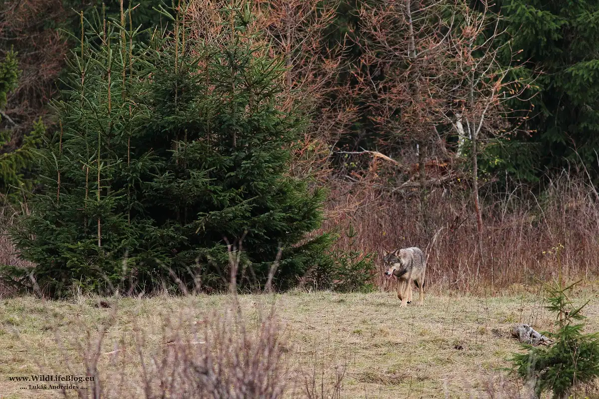 Po niekoľkých minútach pozorujem ďalšieho vlka, bol to samec. Prechádzal veľmi pomaly, niekoľkokrát zastavil a ja som sa nemohol nabažiť pohľadu na tohto vlka. Prešiel snáď 5 metrov okolo mňa a ja som ani nedýchal.