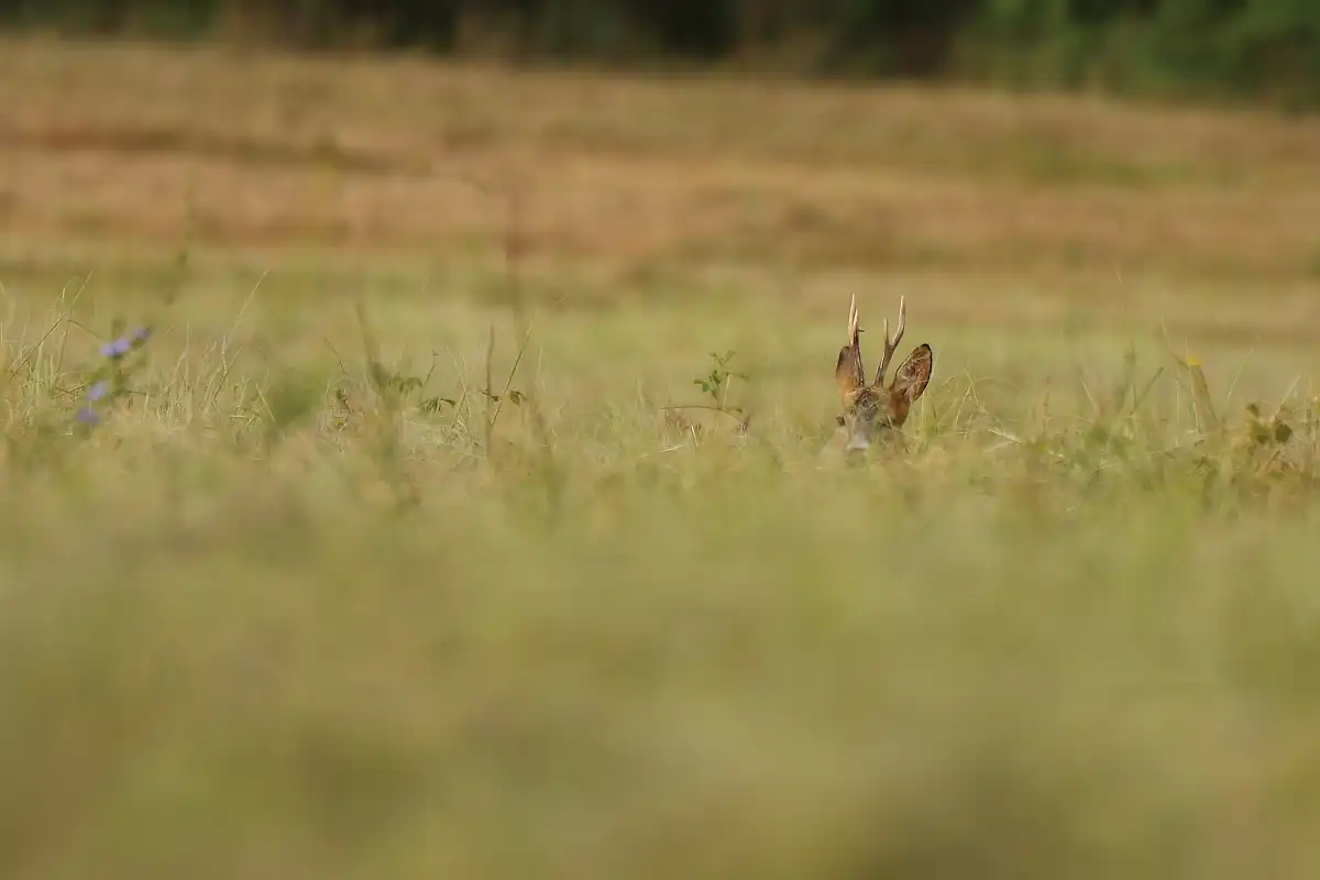 Po tomto nečakanom stretku som to ešte raz vyskúšal aj na toho pôvodného srnca so srnou, ale stále nič, a tak som sa rozhodol priblížiť. Našťastie bolo zamračené, a tak sa nikde neponáhľali. Keďže mi vietor aj terén priali, podarilo sa mi k nim dostať celkom blízko. Ležali v tráve a ja som čakal, čo sa bude diať.
