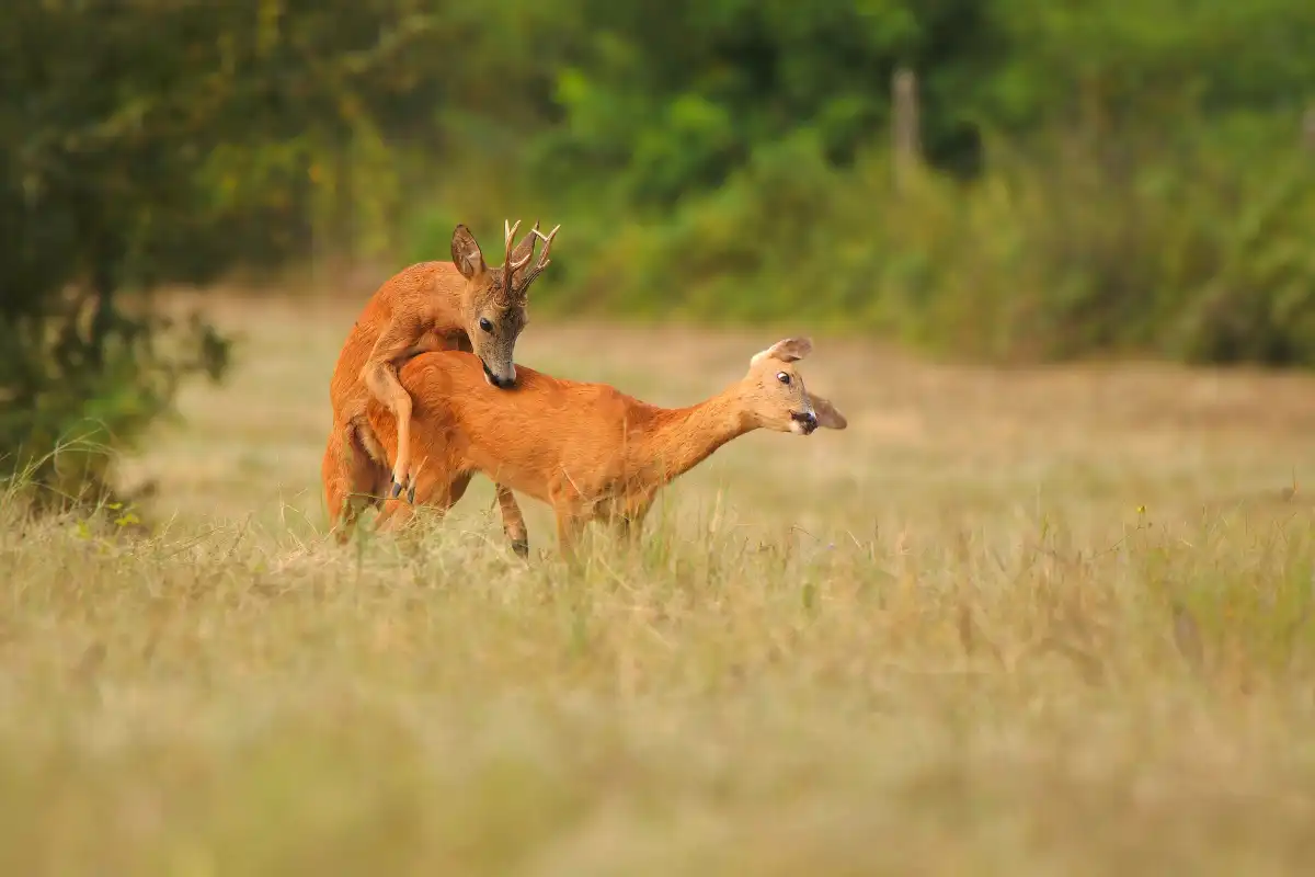 Zrazu sa srna postavila, za ňou srnec a začalo sa divadlo, v ktoré som ani nedúfal, že na takú vzdialenosť zažijem. Začalo sa to naháňačkou, za ktorou nasledovalo asi 6 “kôl” párenia. Fotil som ako zmyslov zbavený, asi 100 fotiek za 20minút. Jediné, čo ma mrzí, že som ani jedno “kolo” nenatočil. Potom sa ešte chvíľu popásli a ďalšou naháňačkou odbehli do lesa.