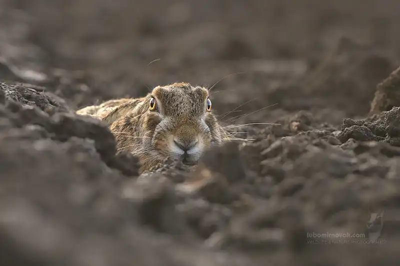 Neviem či je to bežné pre zajacov ale tam si zajace vyhrabávajú také malé pelechy v pooranej pôde .Tým pádom sa tam dobre skrývajú a ten malý pelech ich chráni proti vetru a zime . V rakúsku som si nikdy nevšimol “zaľahnutého” zajaca . Honzo sa fotením zaľahnutých zajacov venuje už roky a fakt má veľmi peknú sériu fotiek . Nafotiť takto zaľahnutého zajaca nieje vôbec jednoduché 🙂 Mne sa podarilo nafotiť takto zajaca asi na 6 krát ale aj to iba dokumentačne a tak lepšie na 9 krát a to som mal skúseného sprievodcu 😀 . Musí byť aj vhodné počasie k foteniu, najlepšie dážd a vietor 🙂 a zoraná pôda . Zajac si myslí že ho človek nevidí keď je prikrčený v pelechu. Niekedy sa dá priblížiť k zajacovi na 2 metre ale aj na to treba mať systém . Väčšinou to zajac nevydrží a utečie 🙂 ale niektorí sú odvážny a nechajú sa nafotiť.